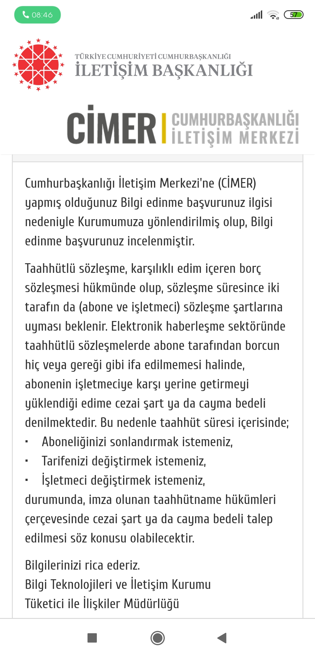 Her neyse geçiş yaptığımız firma da kardeşime cayma bedeli konusunda bir bilgi vermeden belgeler ile aboneliği başlatmış.