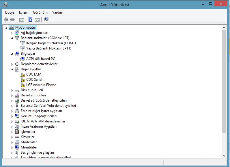 Telefonumdaki interneti bilgisayarda kullanmak için bağladım fakat driver yüklenmedi. Bilinmeyen aygıtlar bölümünde CDC ECM, CDC Serial ve LGE Android Phone adlı 3 sürücü geldi. Bağlantılarda baktığımda ise Bilgisayarın telefonu modem olarak okumadığını gördüm. Varmıdır bunun bir çözümü? < Resime gitmek için tıklayın > |