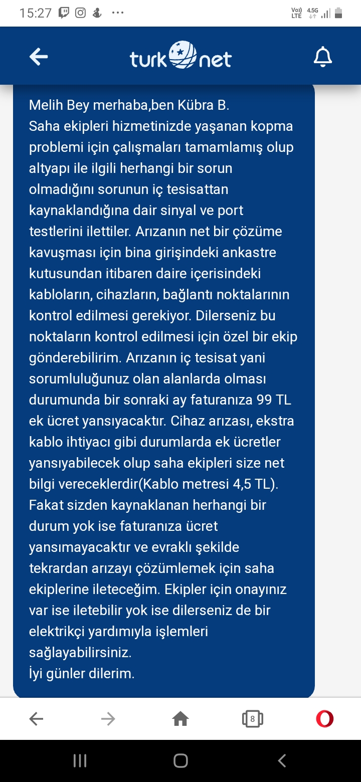 Eveeet 1 haftadir toplam kullandigim internet saati maximum 20 dir oda git gel seklinde suan yine turknet oim.de offline gorunuyor ve ip alamiyorum modemimde tum isiklar yaniyor kurulumda kesinlikle sorun yok ama ne hikmetse internet kendi kendine kesiliyor oglen geldi boraz once yine gitti gunde 3 saat falan kullaniyorum heralde evde kaldigimiz 3 gun zaten hic yoktu internet turknet sorun bina tesisatinizda diyor ne alaka anlamadim internet modemle bulusuyor < Resime gitmek için tıklayın > < Resime gitmek için tıklayın > < Resime gitmek için tıklayın > 1 haftadir internetsizim kanser oldum turknetdestek numarami istiyor sonra numaraya bakmiyor falan destek hattina s.a yazsam bot otomatik cevap atiyor |