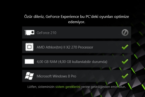 Mrb arkadaşlar. GeForce gt210 1gb 64 bit - ekran kartı 4gb - ram amd athlon II X2 3,40 ghz - işlemci asus marka ana kartım var. 23" monitörüm var 1920x1080 oyun oynarken çoğu oyunda, --Euro Track 2 --Fifa 14 --AOE III --NFS Serisi (2.hariç (: ) --assassin's creed (bütün serileri) kısacası ekran kartının oyun uyumluluğu sayfasında orta veya iyi yazanları bırakın mükemmel çalıştırır dediği oyunlarda bile grafik kalitesini min. çekmek zorunda kalıyorum. Bu normal mi yoksa ekran kartı veya bilgisayarda bir problem olabilir mi ? < Resime gitmek için tıklayın >< Resime gitmek için tıklayın > |