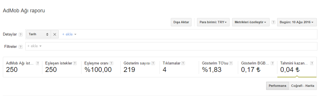 Arkadaşlar uygulamam bir haftadır mağazada. Bir click başına yaklaşık 15-20 krş geliyorken. bugün itibariyle her tıklamaya 0,01 TL gelmeye başladı. Normal bir durum olmadığı kesin? Problem nedir acaba, bilmediğim bir şey mi var? < Resime gitmek için tıklayın > |