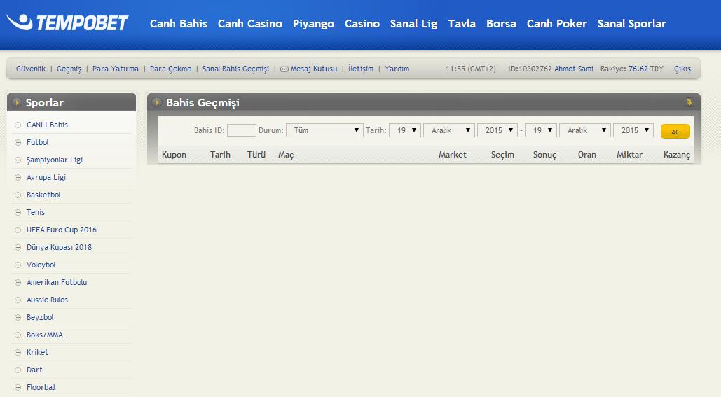 Bugün itibariyle deneme amaçlı 76.62 tl lik Tempobetten açtığım hesabımla bahis yönetimi denemelerine başlıyorum girdiğim bahisleri elde edilen karları, edilen zararları şeffaf bir şekilde Print Screenleyip şeffaf bir şekilde paylaşacağım. Hedefim düzenli bir şekilde aylık %5 ile %15 arası kar elde etmektir. < Resime gitmek için tıklayın > |