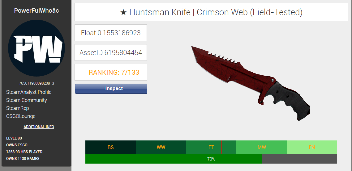 0.15 Float Full MW,Dünya float sıralamasında 7.'dir. Farklı bıçaklar ile takas olur. http://screenshots.metj...5d898c280cfa16dbdaf.jpg -İletişim için:http://steamcommunity.com/id/PowerFulWho https://steamcommunity....29555085&token=GvsaOfIa < Resime gitmek için tıklayın > < Resime gitmek için tıklayın > |