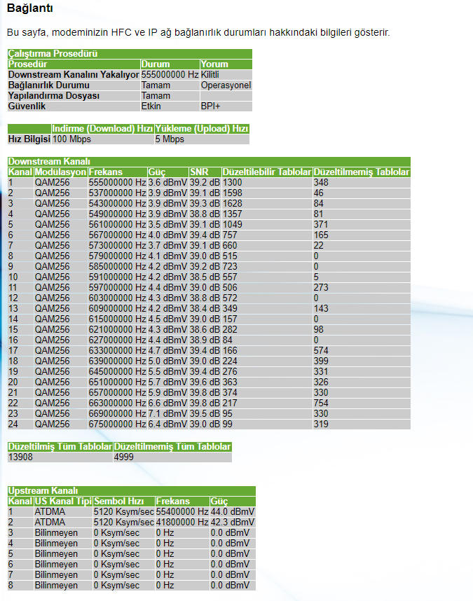 YüzGüldüren tarifesi kullanıyorum. 19-24 arası 25mpbs geri kalan saatler 100mpbs. 100 Downloadım varken 3-4 arası upload alıyorum lakin. 2000-2500Bitrate arası yayın yapmaya çalıştığım zaman çok fazla kare kaybı oluyor. %50leri geçiyor dropframesler. OBSdeki upload göstergesi sürekli oynuyor 168kb 2000kb 1500kb 1700kb 600kb sürekli oynuyor. Bunu nasıl çözebilirim. Eve geldi teknik servis speedtest açtı 3-4 hız aldı sorun yok hatlarda gürültü vardır düzelir dedi düzelmedi. Speedtest ve modem bağlantı bilgilerini ekliyorum. Konum İzmir < Resime gitmek için tıklayın > < Resime gitmek için tıklayın > |