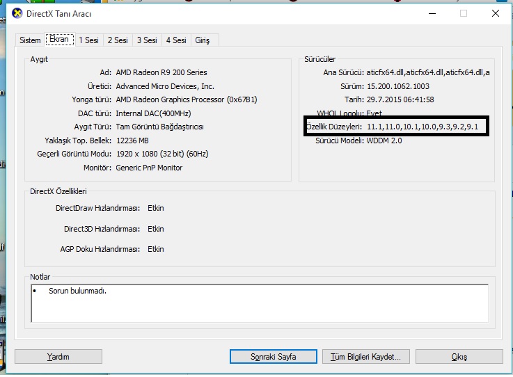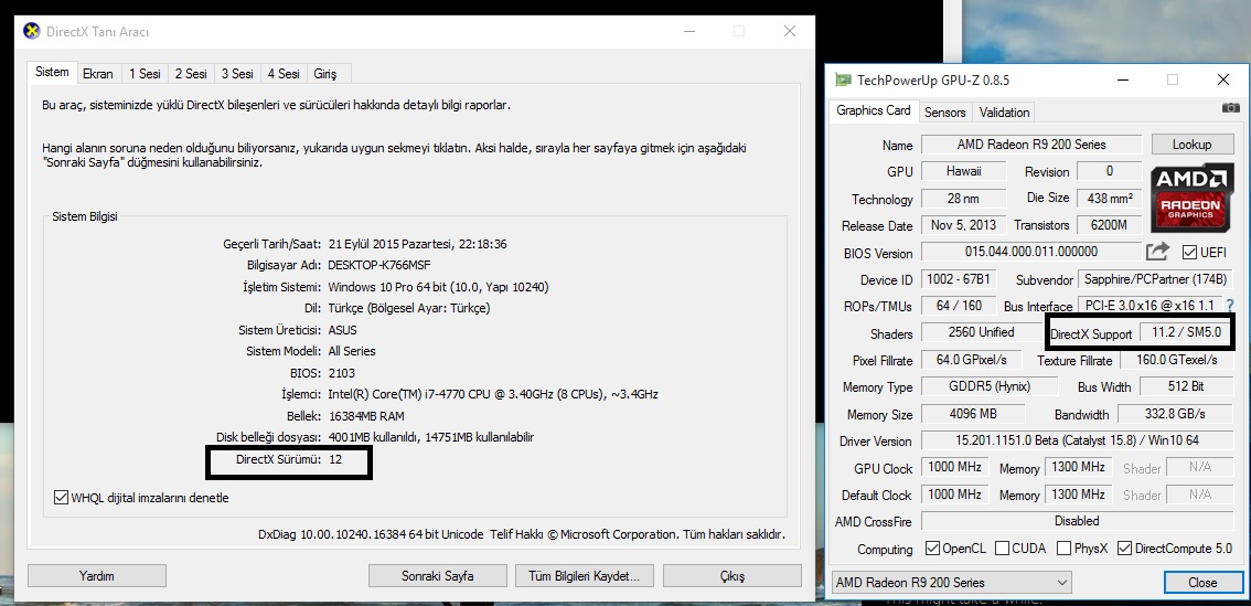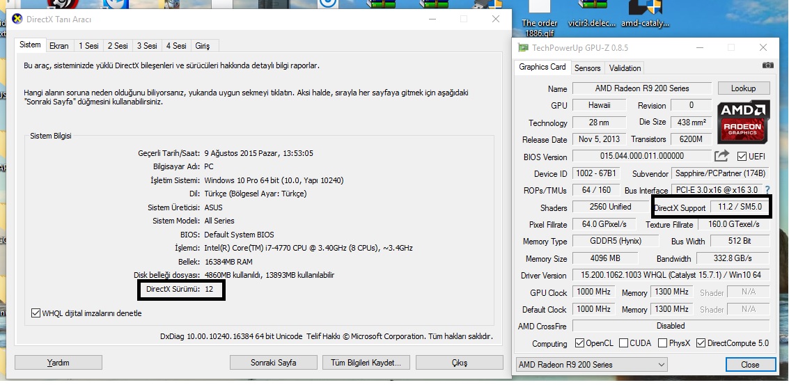 Merhaba görüntüden de anlaşılacağı gibi ekran kartının son sürümü 15.7.1 win10 64 bit sürümünü yüklememe rağmen.. win 10 işletim sistemi dx12 olarak destek vermesine rağmen ekran kartı yazılım olarak destek vermesine rağmen 11.2 olarak gözükmekte.aynı sorunu yaşayan varmıdır ?. yada çözümü bilen.ekran kartına bios update bile yaptım. < Resime gitmek için tıklayın > < Resime gitmek için tıklayın > |