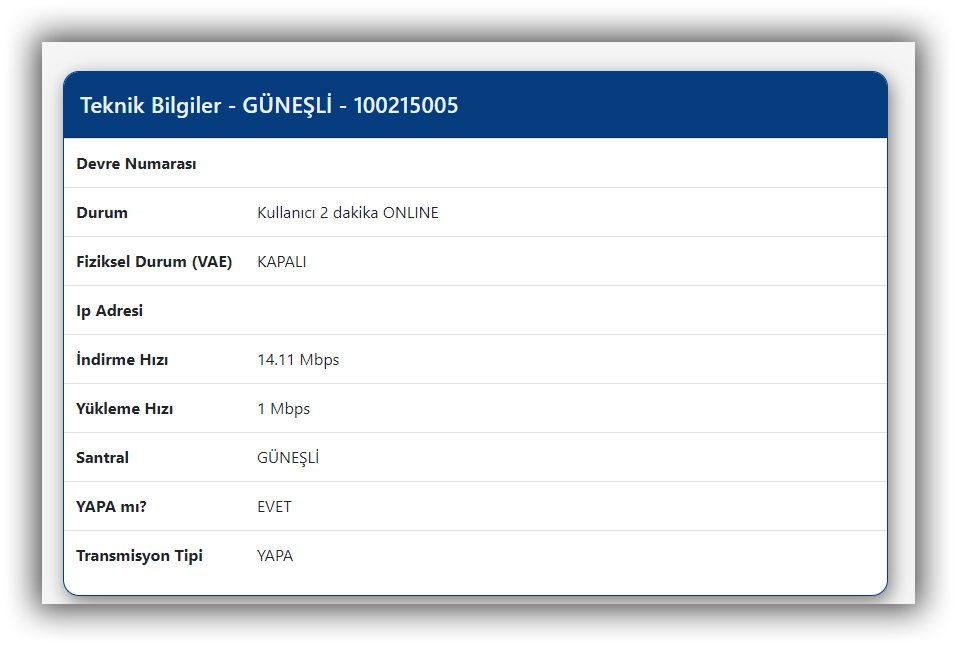 Konuyu daha öncede açtım ama yazan olmayınca geride kalınca yine yazmak istedim. bana ilk 100 mbt vereceklerdi sonra 16 verdiler onda da sorun yok dedim daha önce böyle dediniz açtırmadan önce şimdi 16 veriyorsunuz nasıl olacak port boşalınca alacağız dediler neyse destek kaydı açtım anlattım durumu daha önce konusunuda burada yazdım tarife değişikliyi diye. destek kaydı açtıktan sonra santral saha dolabı incelecek tarafınıza dönülecek dediler çarşamba günü mesaj geldi bağlı olduğunuz santralde çalışma tamamlanmıştır diye baktım hızıma yine aynı ama teknik bilgilerde değişme olmuş yapa kısmı evet olmuş 13 mbt'ten 14 çıkmış upload 0,77 den 1 mbt çıkmış. trasnmisyon yapa olmuş ama hızda hiçbir değişiklik yok aynı duruyor. destek kaydı daha kapanmamış bende değişiklik yok hala aynı diye mesaj attım. santral güneşlide telekom müdürlüğünün orada bildiğim kadarıyla 1 km uzaklığı ama saha dolabı eve çok yakın 500 metre yoktur bu durumda ne yapmam gerekiyor. birşey daha sormak istiyorum açılan destek kaydı kapanmadan yeni bir destek kaydı açılmıyor mu başka bişiler sorucam soramıyorum servis hatası diyor. yapa olmadan önceki teknik bilgiler < Resime gitmek için tıklayın > Yapa hali < Resime gitmek için tıklayın > |