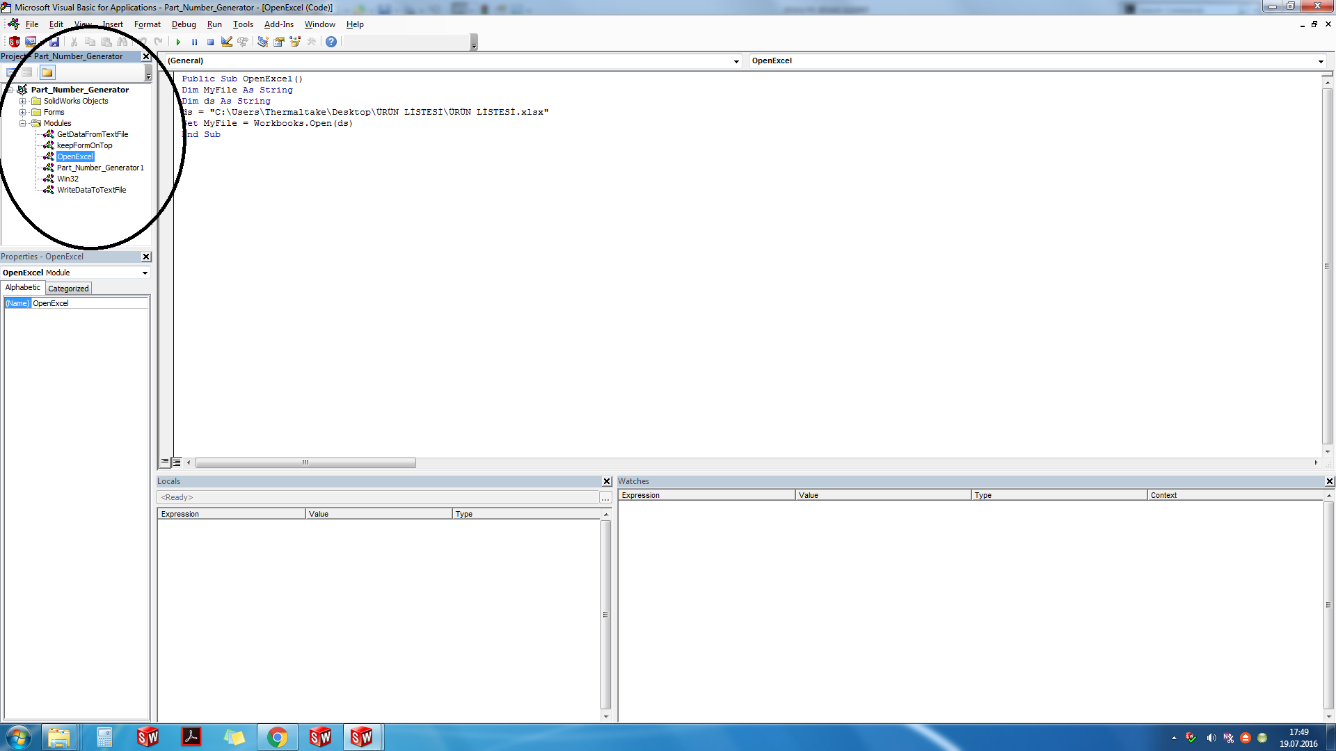 Selamlar; Linkteki videonun altında açıklamalar kısmında paylaşım yapılmış bunu zar zor solide uyarladım. Çalışıyor. Fakat buna ekleme yapmak istiyorum.Aynı form üzerinden mesela excel'e aktar butonu ekleyip. Parça no, serial v.b dataları excele otomatik çekmek ve kaydetmek. Küçük bir erp programcığı amacım aslında sonunda montajdan parçaya otomatik numara vermek gibi bir uygulama yapmak istiyorum. Program txt. üzerinde yazım yapıyor. fakat exceli otomatik olarak açıp veri alamıyorum. İlk adım olarak. Excele'e veri aktabilmek için vba'a nasıl exceli aç ve solidden şu veriyi al-yaz diyeceğim. bilgisi olan var mı? Macro solidden yazıldığı için microsoft excel objesi ekleyemedim. Nasıl ekleyebilirim acaba. https://www.youtube.com/watch?v=ds-5unvmBHU Şimdiden teşekkürler. < Resime gitmek için tıklayın > |