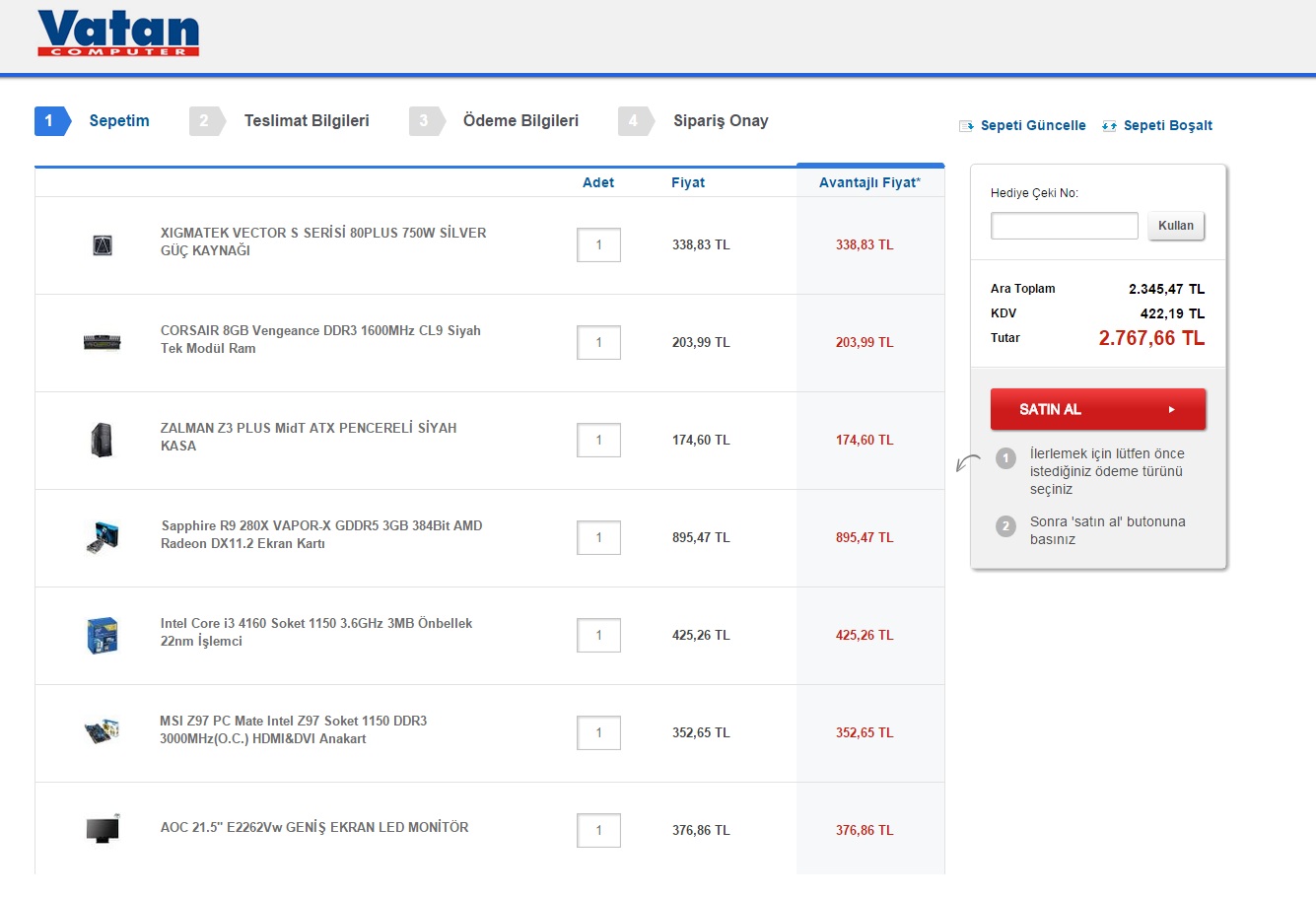 Arkadaşlar yarın bu sistem alıncak 20 günü aşkındır araştırıyorum ve size danışıyorum bakalım olmuş mu bu sistemin tek eksiği ssd ve hdd sanırım genede benim göremediğimi siz görürsünüz belki şimdiden teşekkürler değerli yorumlarınızı dört gözle bekliyorum :) - MSi R9 280X 3 GB 384 Bit AMD Radeon (912,59 TL)[Sapphire düşündüm fakat bulunduğum yerdeki Vatan şubelerinde mevcut değil] - MSi 970 Gaming (369,78 TL) - Corsair 8 GB 1600 Mhz CL9 Tek Modül RAM (200,16 TL) - Zalman Z3 600LE 600W Pencereli Kasa (338,56 TL) - AMD FX X6 6300 3.50 Ghz (393,53 TL) [OverClock yapmak istiyorum O.C ile i3 4160'tan çok FPS alıyor ve nerdeyse her oyunda testlerde kanıtlamış bunu] - ThremalTake contac21 İşlemci Soğutucu (108,56 TL) - AOC E2262Vw 21,5" Monitör (369,78 TL) - SSD daha sonra alınacak ve şuanki (WD 2.5 320 GB 6 MB Önbellek) HDD kullanılcak. Toplam Fiyat : 2,672,93 TL |