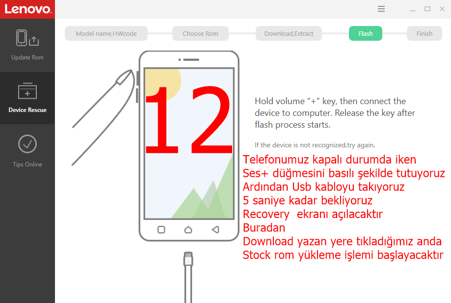 3- Dikkat: Stock rom yükleme işlemine başlamadan önce telefonunuzda olan önemli herşeyin yedeğini alın stock rom yükleme işleminde telefonun hafızasında olan herşey silinecektir