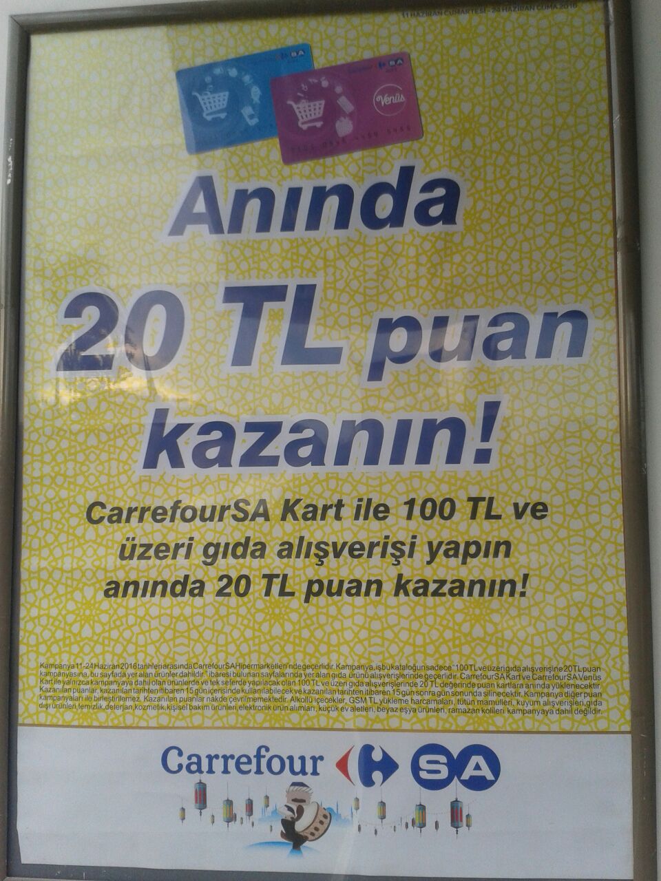 slm arkadaşlar resimleri çektim ama çok net değil 11-24 arası 100 tl ye 20 puan veriyor kredi kartlarıyla kombo yapılabilir... detay bilen arkadaşlar paylaşabilir < Resime gitmek için tıklayın > < Resime gitmek için tıklayın > |