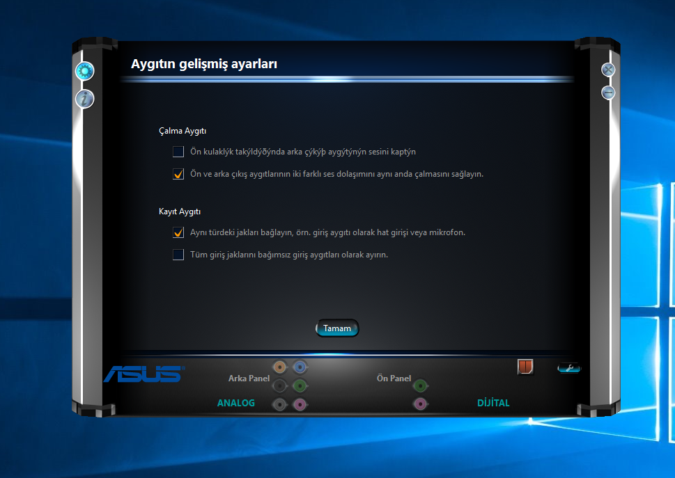 böyle saçma bi sorunla karşılaşacağımı hiç düşünmezdim aklıma gelen her şeyi yaptım son olarak buraya yazıyorum yoksa windows 7 kurmak zorunda kalacam sanırım. elime tuf990fx anakartlı bi sistem geçti sistemi kurdum ettim windows 10 un 2018 ve ardından 2016 sürümlerini kurdum her ikisinde de gerek anakartın sitesinden gerek realtekin sitesinden farklı win10 uyumlu yeni denilebilir driverler denedim win7 sürümleri dahi uyuymluluk moduyla denedim fakat nafile ses yok bi türlü getiremedim benzer bişey yaşayanların yorumlarını bekliyorum önceki anakartımın sadece 3 çıkışı vardı fakat bunda optic çıkış felan da var ekstra bişey mi yapmam gerekli anlamadım kaç gündür denemediğim şey kalmadı nerdeyse son çare ya windows 7 kuracağım belki driver uyumsuzdur ya da donanımsal bi arıza var ses kartı da almak istemiyorum uydurukları 100 tl kasamın ön panel çıkışı bozuk olduğu için zaten anakarta hiç bağlantısını yapmadım sesi arka taraftan almak istiyorum aşağıya ekleyeceğim ss lerdeki ayarları birçok kez değiştirdim ama sonuç aynı; < Resime gitmek için tıklayın > < Resime gitmek için tıklayın > < Resime gitmek için tıklayın > < Resime gitmek için tıklayın > < Resime gitmek için tıklayın > |