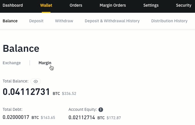 BNB coinleri Marjin Cüzdanınıza transfer ettikten sonra, bu coinleri fon borç almak için teminat olarak kullanabilirsiniz. Majin Cüzdanı bakiyeniz, sabit oran olan 3:1 (3x) koşulunu takip ederek borç alabileceğiniz fon miktarını belirler. Yani eğer 1 BTC’niz varsa, 2 BTC daha borç alabilirsiniz. Bu örnekte, biz 0.02 BTC borç alacağız.
