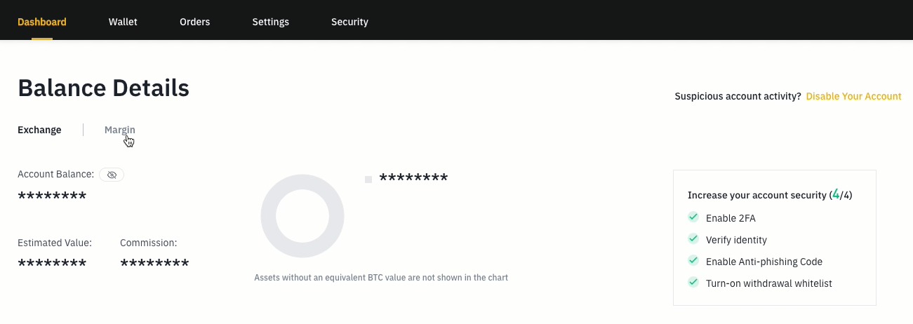 Artık hesap panonuza ulaştınız. Bu sayfada hesap bakiyelerinizi görebilirsiniz. “Bakiye Detayları”nın altındaki “Marjin”e tıklayarak Binance marjin ticaret hesabınızı açma sürecine başlayabilirsiniz. Binance’te bir majin hesabı açmak için, kimlik doğrulamasını (KYC) tamamlamanız ve ülkenizin kara listede olmadığından emin olmanız gerekir. Ayrıca 2FA’i etkinleştirmek de zorunludur.