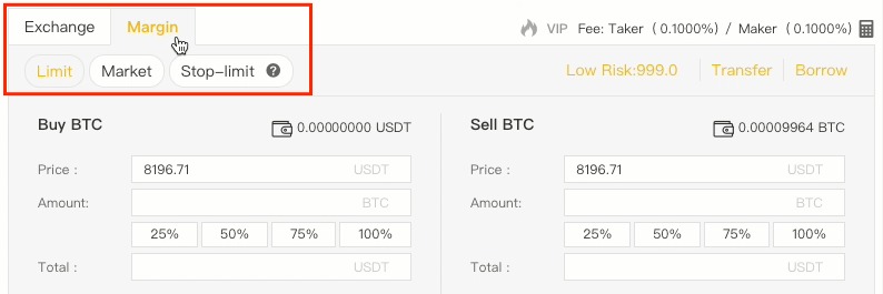 Eğer borç aldığınız fonlarınızı alım satım için kullanmak isterseniz, Borsa sayfasına giderek, “Marjin” sekmesini seçebilir ve Limit, Piyasa ve Stop-Limit Tekliflerini kullanarak normalde yaptığınız gibi alım satım yapabilirsiniz.