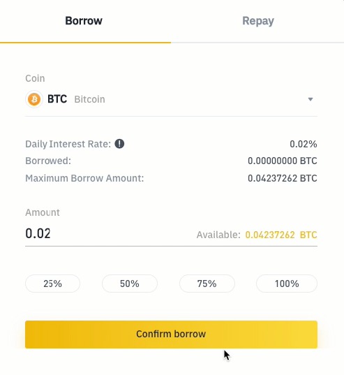 Borç almak istediğiniz coini ve miktarı seçtikten sonra, “Borç almayı onayla”ya tıklayın.