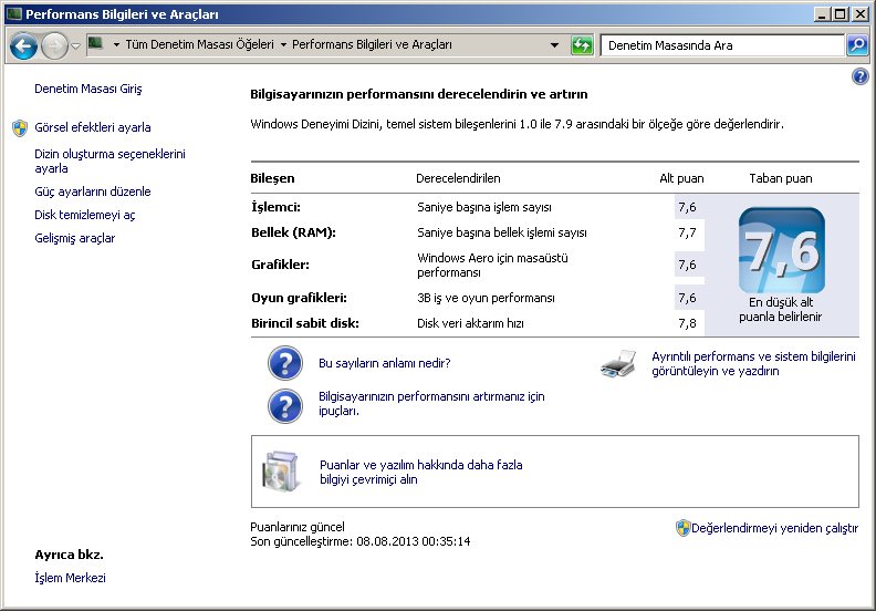 Focus bilgisayar bilgisayar teslimini baya geciktiriyor ama sabrın sonucunda performans bizi bekliyor. Windows 7 kurdum ve windows derecelendirmesi işte bu şeklide. < Resime gitmek için tıklayın > |