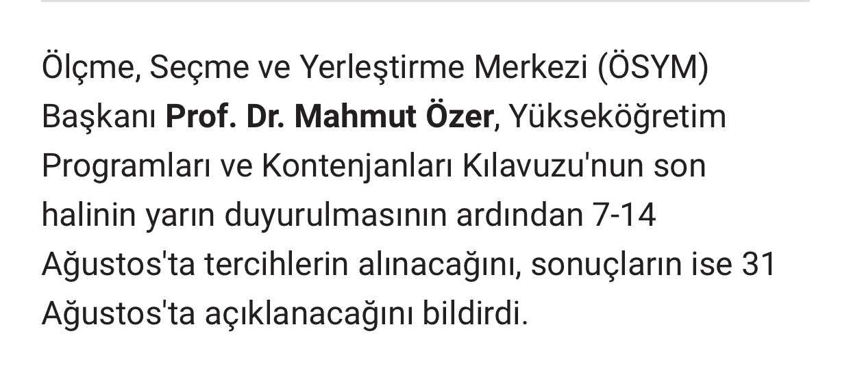 | Bugün gece açıklanması lazımdı. Açıklanmayınca ibre 31 Ağustos’a kaydı, ben de ÖSYM’ye. |