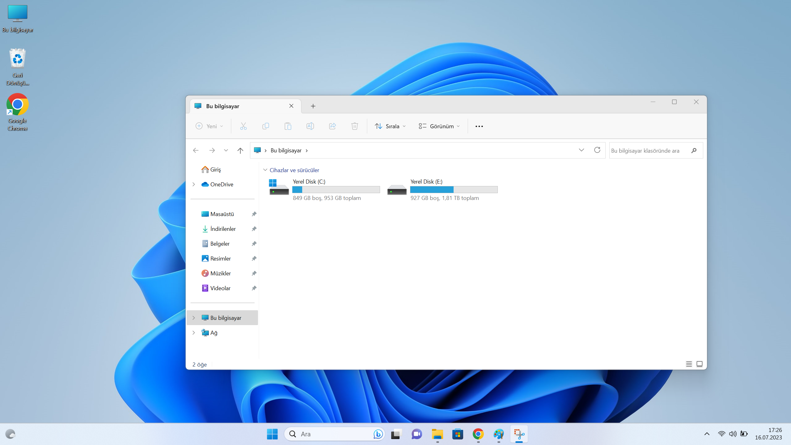 2 TB samsung (ekteki fotoda görünen şu an ki E diski) windows 10 yüklü ve diğer 1 TB (ekteki fotoda görünen şu an ki C diski, windows şu an buradan başlıyor) yedek depolama olarak kullanıyordum. 2 TB SSD'yi söktüm (herhangi bir şekilde sıfırlamadım, ayar yapmadım veya başka bir PC'ye takmadım sadece söktüm :) ). Yedekleme olarak kullandığım 1 TB SSD'ye W11 yükledim ve 2 ay bu şekilde kullanmak zorunda kaldım.