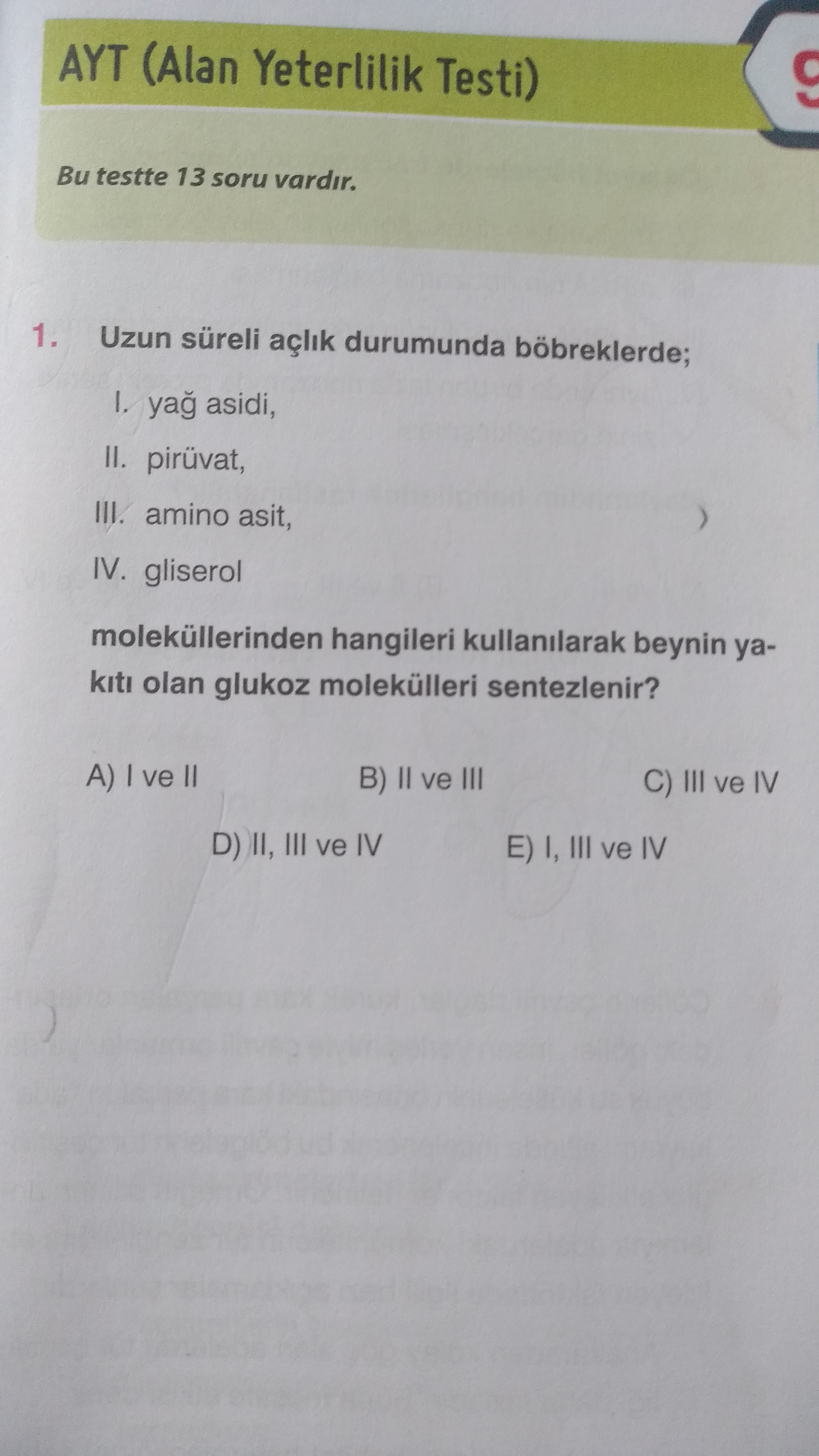 | Cevap D diyor ancak ben E düşünüyorum. Çokc kaynak bitirdim ve yağasitleri uzun süre açlıkta glikoza çevrilir diye biliyorum ancak burda neden D almış anlamadım. Sizce? < Resime gitmek için tıklayın > |