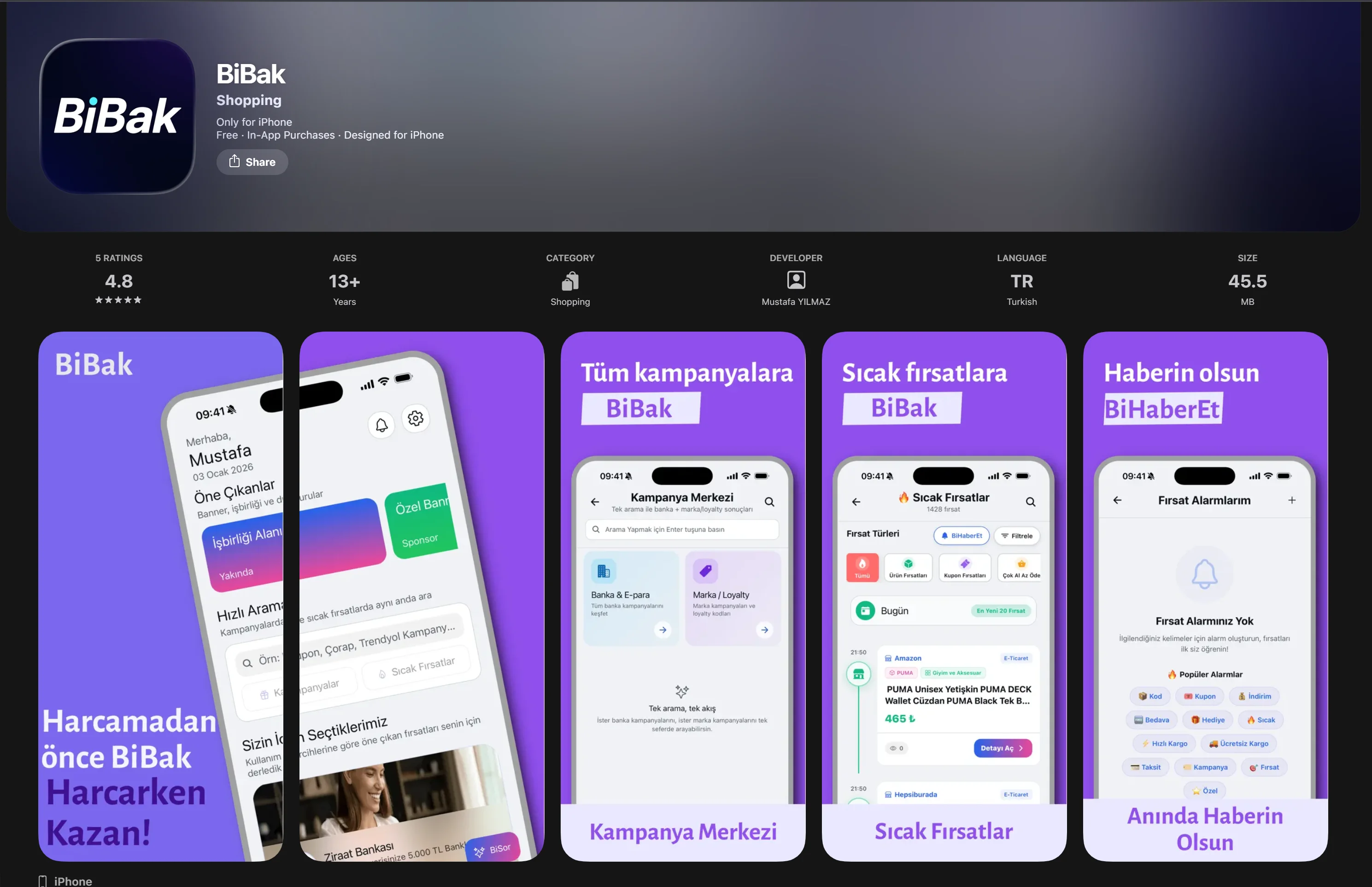 Merhabalar arkadaşlar, BiBak uygulaması temelde sıcak fırsatlar ve buna bağlı olarak bankaların, e-para kuruluşları (papel,tami, papara, nays vb.) , marka bağlılık(loyalty yani vodafone happy vs.) gibi kampanyaları tek kanaldan gösterilmesini sağlıyor. Sıcak fırsatlar da ise birçok telegram kanalını aynı anda takip ederek listeleyen bir sıcak fırsatlar bölümü ile hem ürün fırsatlarını hem de bu anlık kupon kodları çarkları vs. takip edebilmiş olacaksınız) ve her iki tarafta olmayan veyahut başka istek talep öneriler için reddit benzeri okuması daha rahat bir forum bölümünü barındırıyor. Full Stack olarak, Mobil uygulama, backend, yönetim panelini geliştirdiğim bu uygulamayı ilk başta -arkadaş çevresinden sonra- sizlerin kullanımına sunmak böylece fikirlerinizi duymak ve önerilerinizi almak istiyorum. Uygulama zaten buraya kadar teknik, sözel, tasarımsal feedbacklerle bu hale geldi. şuan iOS ta çıkışını tamamladım, android için closed beta bitimine 5-6 gün kaldı ancak android kullanıcıların beta katılım talep maillerine ivedilikle dönüş yapılacaktır. BiBak Website ' si üzerinden uygulama özelliklerini ve ekranlarını görebilir ve direkt olarak App Store mağazasından uygulamaya erişebilir; Android kullanıcısı iseniz kapalı beta programına dahil olabilmek için cihazınız'da Play Store da kullandığınız e-posta adresinizi iletebilirsiniz. Her türlü talep öneri şikayet için destek@bibak.app mail adresine görüşlerinizi iletebilir veyahut buradan DM üzerinden görüşebiliriz. < Resime gitmek için tıklayın > < Resime gitmek için tıklayın > |