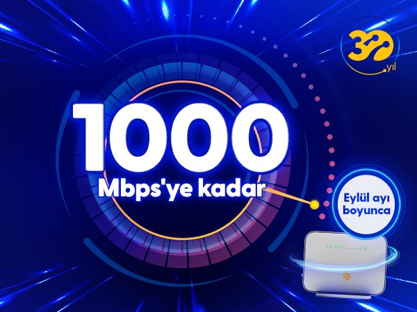 Turkcell Superonline, 30. yılına özel olarak Eylül ayı boyunca fiber altyapısındaki herkesin indirme hızını 1.000 Mbps'ye, yükleme hızını ise 100 Mbps'ye yükseltti.