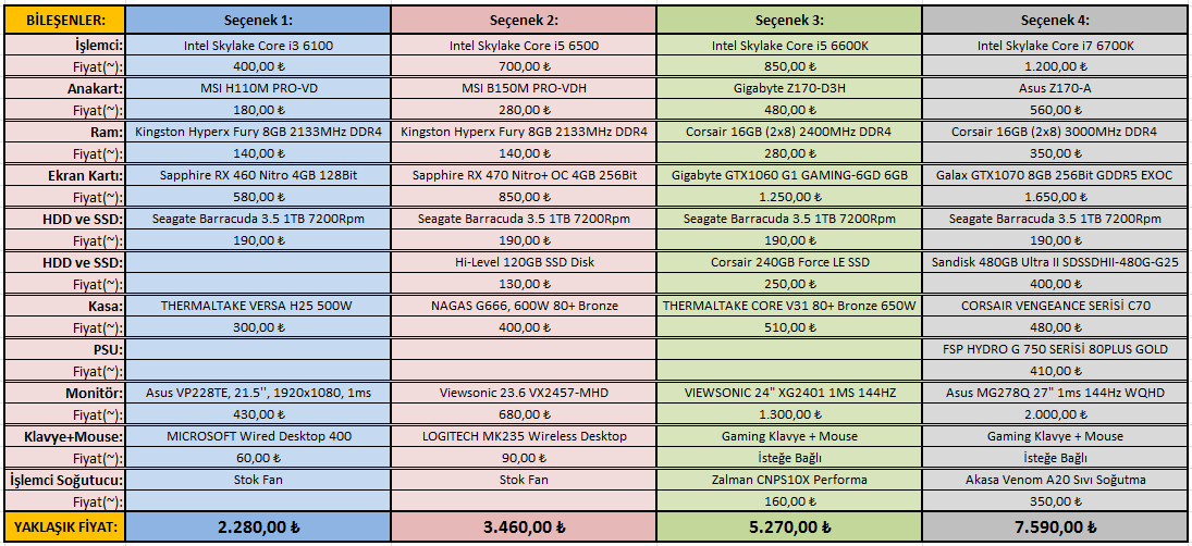 Bu yüzden AMD sistem toplamak şu an için anlamsız olduğu için 4 adet güncel Intel skylake tabanlı sistem örnekleri sunmaya çalıştım.