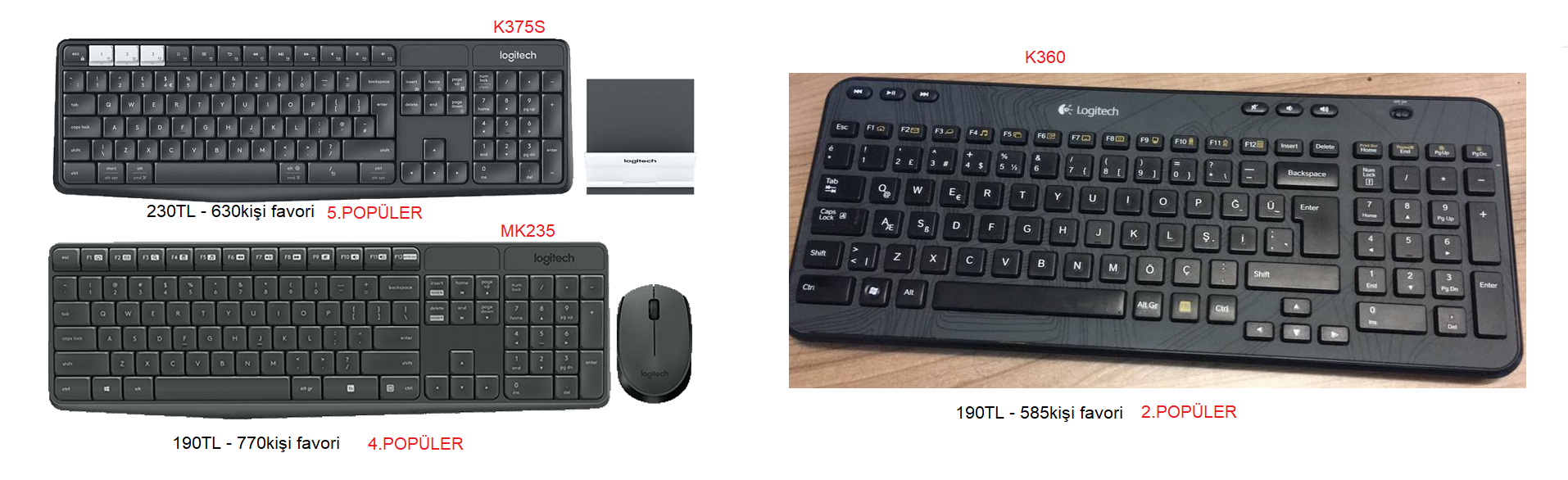 6) LOGITECH MK235 (mouse M220) - 170₺