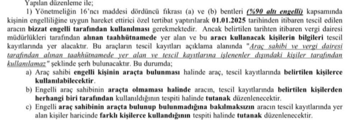 (27.12.2024 Tarih ve 32765 sayılı resmi gazetedeki 7537 sayılı kanun ile getirilen düzenlemeler işlenmiştir) Merhaba arkadaşlar, Bu konu vasıtasıyla çok gerekli ve sürekli el altında olması gereken bu bilgilerin göz önünde kalmasını amaçladım. İlk mesaja sizlerin de mutlaka katkısı, şu da eklensin dediğiniz şeyler olacaktır, katkılarınızı paylaşırsanız, ilk mesaja eklerim. ********************************************************************************************************************************************* İSTİSNA KAPSAMINDAKİ TAŞITLAR Özel Tüketim Vergisi Kanununun 7 nci maddesinin birinci fıkrasının (2) numaralı bendinin (a) alt bendi uyarınca, Kanuna ekli (II) sayılı listedeki kayıt ve tescile tabi mallardan, , motor silindir hacmine bakılmaksızın, hesaplanması gereken özel tüketim vergisi ve diğer her türlü vergiler dâhil bedeli 2025 yılı için 2.290.200,00 TL’nin altında olan ve en az %40 yerlilik oranına sahip araçlardan, Türk Gümrük Tarife Cetvelinin, 87.03 tarife pozisyonunda yer alan, Binek otomobil, panelvan, pick-up, arazi taşıtı, ATV, jeep, steyşın vagon vb. taşıtların, 87.04 tarife pozisyonunda yer alan, eşya taşımaya mahsus, 2800 cm³ veya altında motor silindir hacmine sahip van, panelvan, kamyonet, pick-up vb. taşıtların, 87.11 tarife pozisyonunda yer alan, motor silindir hacmine bakılmaksızın motosikletlerin ilk iktisabı ÖTV den istisnadır. Engelli araç alımınında uygulanan ÖTV muafiyeti üst limiti 1 Ocak 2025 tarihinden - 31.12.2025 Tarihine kadar (Her sene yeniden değerleme oranında artıyor) 2 milyon 290 bin 200 liradır. Yukarıdaki rakam ve yerlilik oranı dışında, motor hacmine göre bir kısıtlama bulunmamaktadır. Araçların yerlilik oranlarına aşağıdaki siteden ulaşılabilir; Sanayi Genel Müdürlüğü | T.C. Sanayi ve Teknoloji Bakanlığı ********************************************************************************************************************************************* ÖTV İstisnasından kimler yararlanabilir, detaylı anlatım; TEBLİĞ Maliye Bakanlığından: ÖZEL TÜKETİM VERGİSİ (II) SAYILI LİSTE UYGULAMA GENEL TEBLİĞİ II- İSTİSNALAR VE VERGİ İNDİRİMİ C- DİĞER İSTİSNALAR 1. Malul veya Engellilerin Taşıt Alımlarında İstisna Özel Tüketim Vergisi Kanununun 7 nci maddesinin birinci fıkrasının (2) numaralı bendinde düzenlenen, Kanuna ekli (II) sayılı listedeki kayıt ve tescile tabi malların malul veya engelliler tarafından ON (10) yılda bir defaya mahsus olmak üzere ilk iktisabında uygulanan istisnaya ilişkin usul ve esaslar aşağıda belirlenmiştir. 1.2. Engellilik Derecesi %90 veya Üzerinde Olanların Taşıt Alımlarında İstisna Her yıl belirlenen limitler dahilindeki araçların (2025 yılı için 2 milyon 290 bin 00 TL) engellilik derecesi %90 veya daha fazla olan malul veya engelliler tarafından ON yılda bir defaya mahsus olmak üzere ilk iktisabı ÖTV’den müstesnadır. Bu istisnadan yararlanmak için, taşıtın özel tertibatlı olması ve malul veya engellinin taşıtı bizzat kullanması şartı aranmaz. 1.3. Engellilik Derecesi %90’ın Altında Olanların Taşıt Alımlarında İstisna Engelliler tarafından bizzat kullanmak amacıyla engelliliğine uygun hareket ettirici özel tertibat yaptıran malul veya engelliler tarafından ilk iktisabı ÖTV’den müstesnadır. Bu durumda engellinin sağlık kurulu raporundaki engeliyle paralel kodları içeren "B" sınıfı ehliyeti olması şarttır. İstisnadan yararlanmak için taşıtın, özel tertibatlı olması ve malul veya engelli tarafından bizzat kullanılabilecek durumda olması şarttır. Bu uygulamada, taşıtı hareket ettirici aksam olarak debriyaj, fren ve gaz pedalları ile vites kolu kabul edilir. İlk iktisaptan önce hareket ettirici aksamda sabitlenmiş bir şekilde özel tertibat yapılması gerekmekte olup, yapılan özel tertibatın kişinin engelliliğiyle uyumlu olması da zorunludur. Sol el ve/veya kolda engelliliği bulunanların, taşıtta hareket ettirici aksam sayılan manuel vites kolunu engelliliğe uygun olarak direksiyona monte ettirmesi ve benzeri şekilde tadilat yaptırması veya taşıtın fabrika çıkışında vitesin direksiyonun sağ tarafına sabitlenmiş olması gibi haller hareket ettirici aksamda özel tertibat olarak kabul edilir. Direksiyona topuz takılması, engelin bulunduğu taraftaki silecek kolu, sinyal, cam silecek kumandası, dörtlü flaşör, ön-arka cam su fıskiyesi, korna ve kontak gibi düzeneklerin diğer tarafa alınması veya direksiyon simidine monte edilmesi ve benzeri tadilatlar taşıtı hareket ettirici aksamda özel tertibat kapsamında değerlendirilmez. Taşıtın otomatik vitesli olması, engelliliğe uygun hareket ettirici özel tertibat yaptırılması şartının aranmasına engel değildir. Dolayısıyla otomatik vitesli taşıtların hareket ettirici aksamında da kişinin engelliliğine uygun olarak sabitlenmiş özel tertibat yaptırılması gerekmektedir. Örneğin, sağ ayağı ampute olan bir engellinin, fren ve gaz pedalında özel tertibat yaptırmadan otomatik vitesli taşıtı kullanması mümkün olmadığından, ancak anılan tertibatın yaptırılması halinde otomatik vitesli bir taşıt bakımından istisnadan faydalanılabilir. Öte yandan, manuel vitesli bir taşıtı vites kolunda ve/veya debriyaj pedalında sabitlenmiş özel tertibat yaptırmadan kullanamayacak durumda olan engelliler bakımından, otomatik vitesli taşıtlar, özel tertibatlı taşıt olarak kabul edilir. 20/2/2019 tarihinden itibaren düzenlenen engellilik sağlık kurulu raporlarına istinaden işlem yapılabilmesi için raporun “Sadece hareket ettirici aksamda özel tertibatlı taşıt kullanması gerekir” değerlendirmesini içermesi şarttır. Bu tarihten itibaren düzenlenmekle birlikte söz konusu değerlendirmeyi içermeyen raporlara istinaden işlem