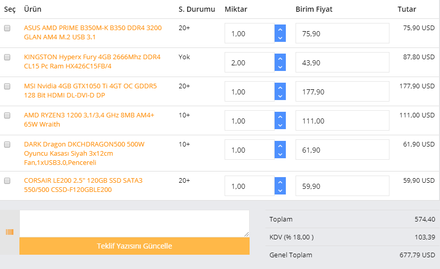 Merhaba iyi forumlar. Uzun zamandır sistem toplamayı düşünüyordum beklemekten sıkıldım açıkçası fiyatların düşeceği yok gibi. Bu sistemi toplamaya karar verdim görüşleriniz nedir. Pubg far cry call of duty tomb raider filan oynamayı düşünüyorum başımı ağrıtırmı. Ramler 2666 mhz 2x4gb dual kit olarak kullanmayı düşünüyorum. Sistemin Fiyatı 2555 TL < Resime gitmek için tıklayın > |