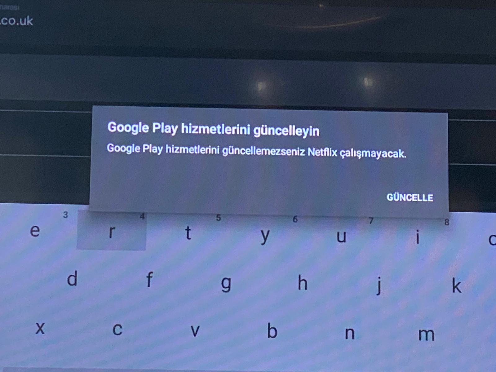 onvo smart tv sahibiyim, 1 haftadır Netflix uygulamasına girince uygulama açılmıyor ve Google Play hizmetlerini güncelleyin uyarısı veriyor. Google play hizmetlerini güncelle seçince cihazınızla artık uyumlu değil yazıyordu, güncellenmiyordu.