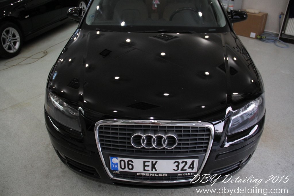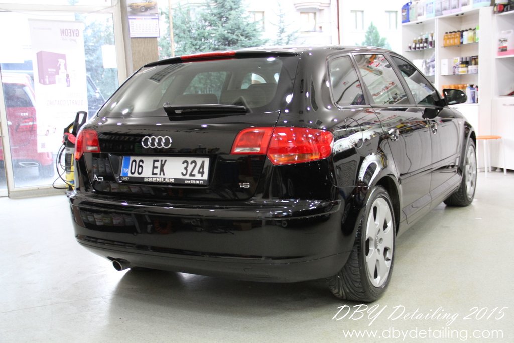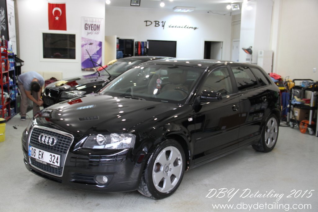 Uygulama merkezimize gelen siyah renk Audi A3 aracın detaylı temizlik ve boya koruma işlemlerini yaptık.