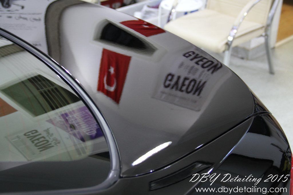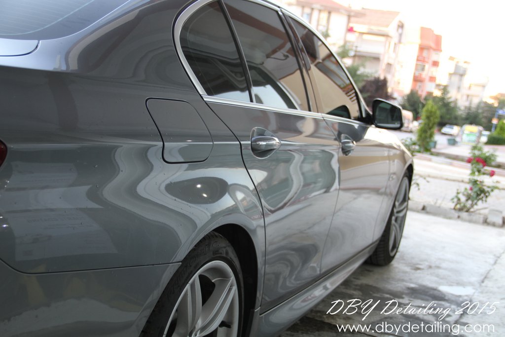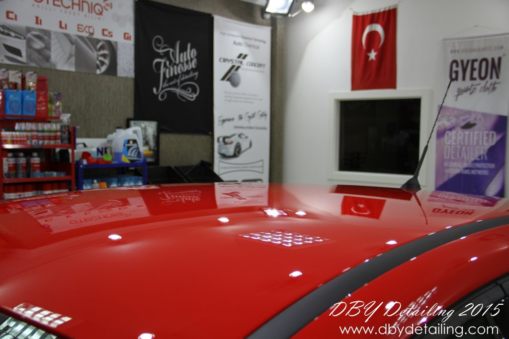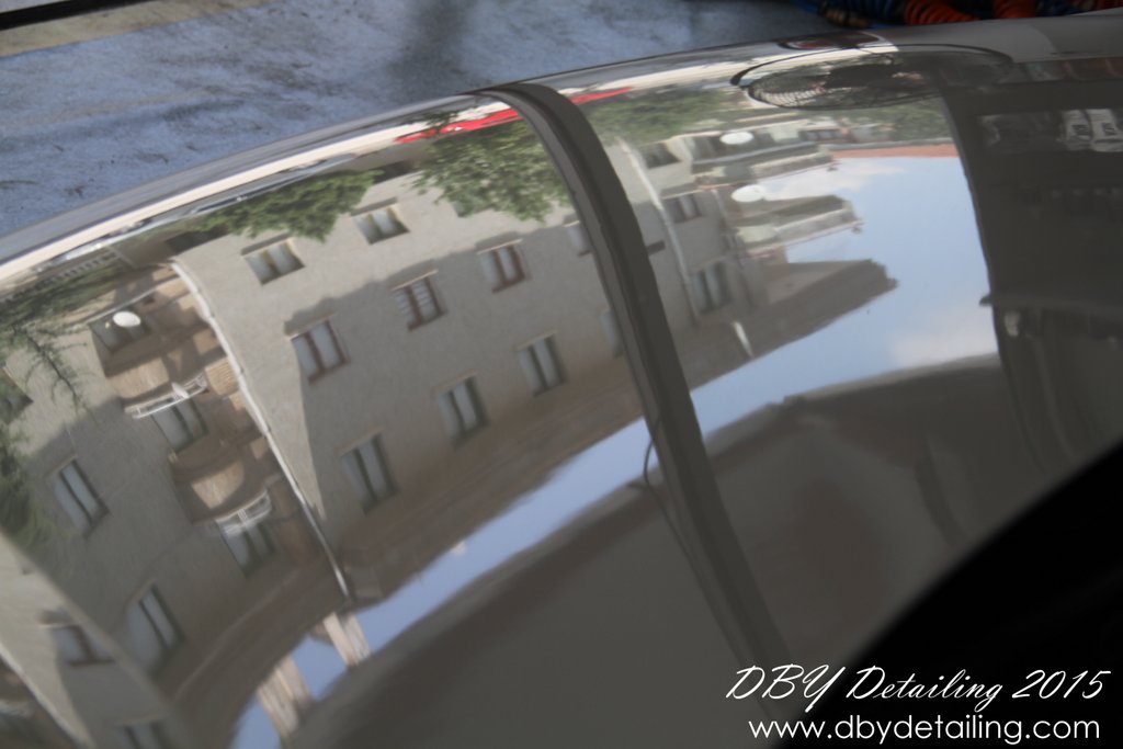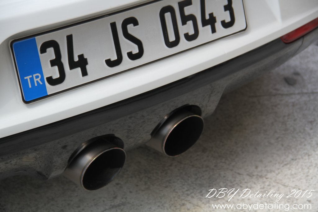 Uygulama aşamalarının fotoğrafları malesef yok. Aracın yüzeyindeki çizikleri gidermek için Dewalt DWP849x Polisaj makinamız ve yün ped ile Menzerna HCC400 uyguladık. Ardından Rupes LHR15 ve Rupes sarı ped ile Menzerna SFP3800 uygulayarak yüzeyi parlattık.