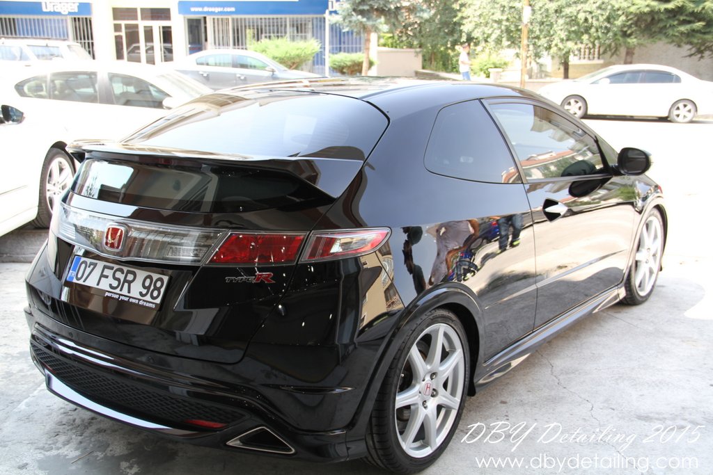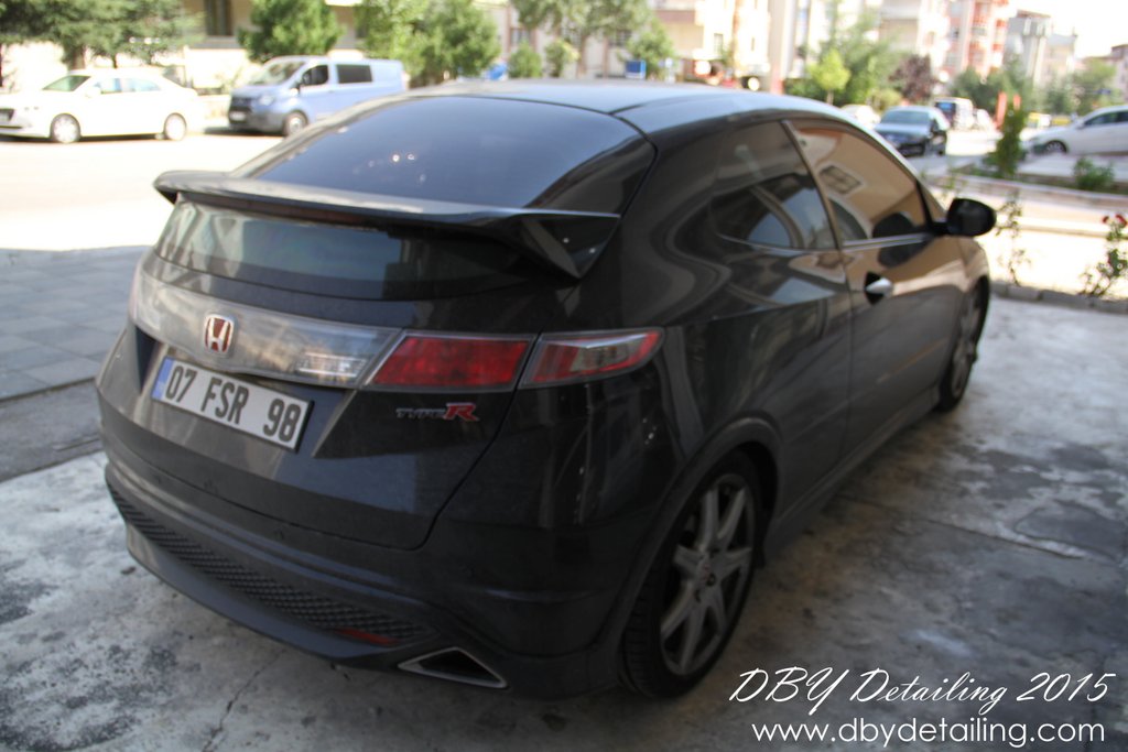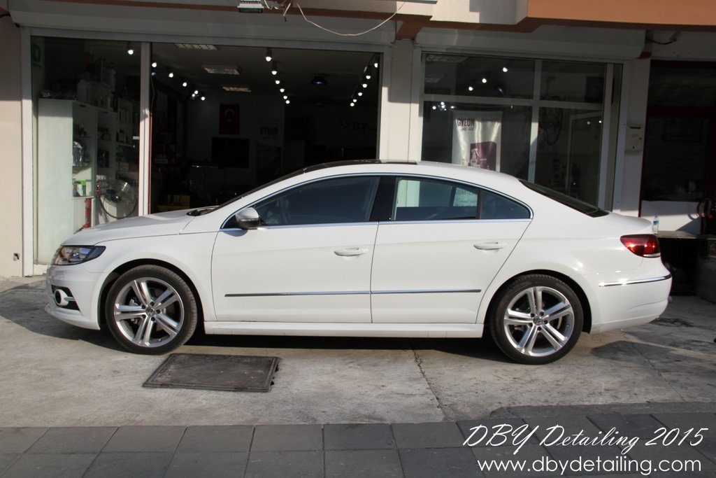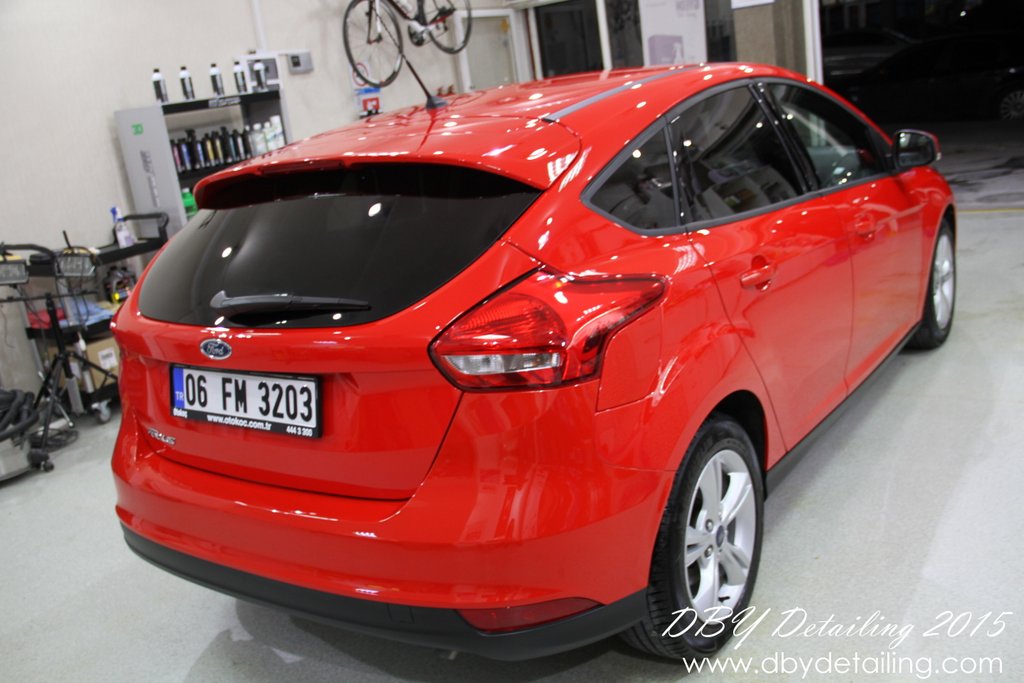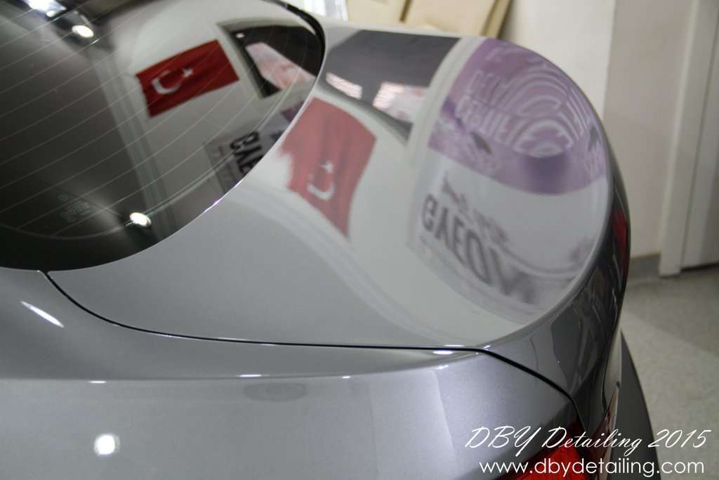 Uygulama aşamalarının fotoğrafları malesef yok. Aracın yüzeyindeki çizikleri gidermek için Dewalt DWP849x Polisaj makinamız ve yün ped ile Menzerna HCC400 uyguladık. Ardından Rupes LHR15 ve Rupes sarı ped ile Menzerna SFP3800 uygulayarak yüzeyi parlattık.