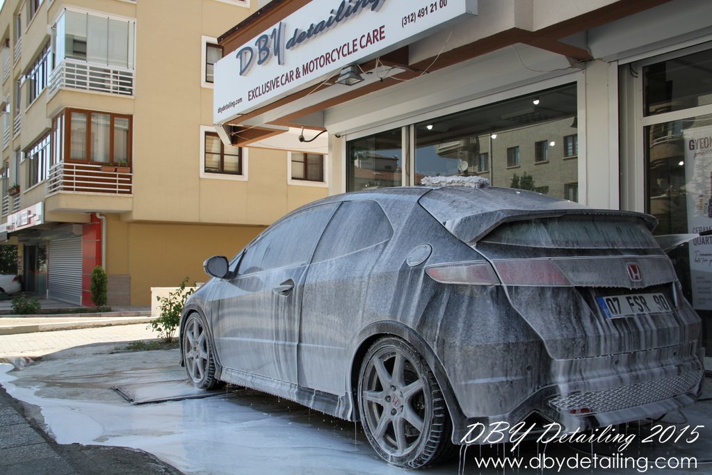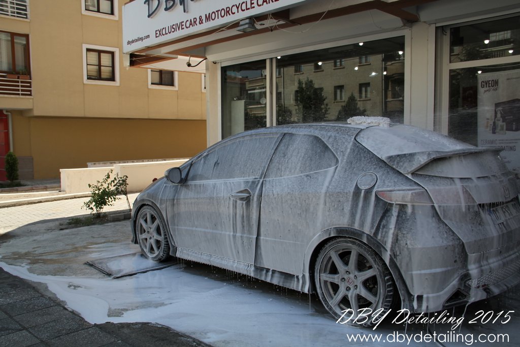 Aracı Valet Pro Advanced Snow Foam ile yıkadık. Gyeon Iron ile demir tozlarından arındırdık. Gyeon Q2M kil ile temizledikten sonra,uygulamalarına başlamak üzere içeri aldık.