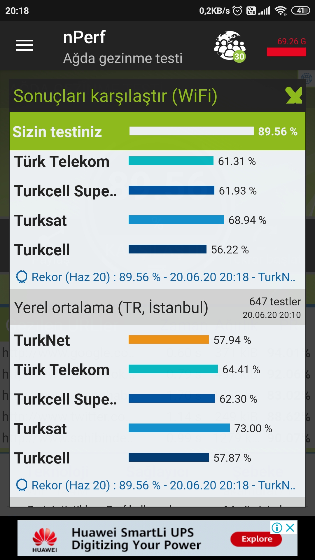 Ben internetim den ne memnunum nede değilim.Hep daha iyisini hayal ediyorum gerçi.Sayfaları daha hızlı açan bir internet peşindeyim .Aklımda bu var hep.75 Mbps paketim var. Nperf yüklemiştim telefona.Dün test yaptım bir kaç defa. Ağda gezinme testinde rekor kırmışım farkettim. Şimdi ben gerçekten iyi bir net sahibimiyim yoksa Nperfi dikkate almayayımmı? Çünkü her zaman daha iyi internete geçmek gibi bir fikir aklımdan hiç çıkmıyor çünkü. < Resime gitmek için tıklayın > < Resime gitmek için tıklayın > |