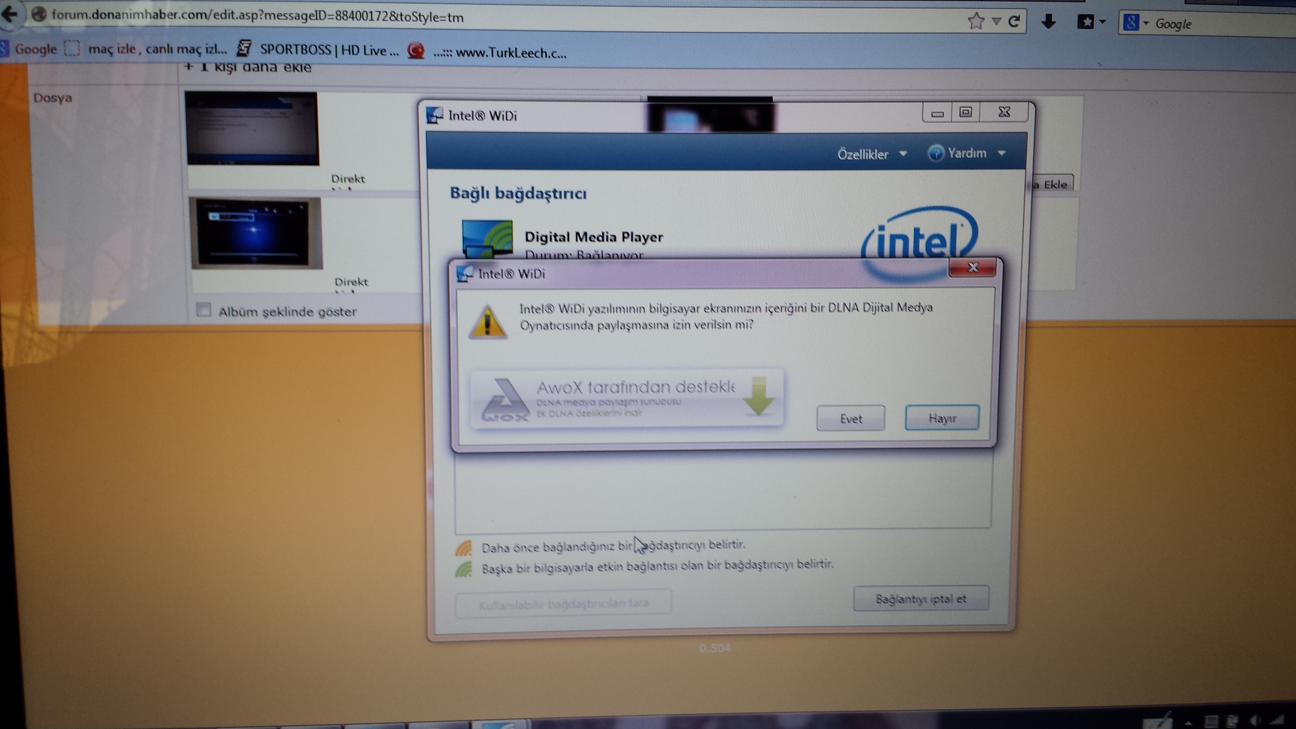 Arkadaşlar İntelin Widi uygulamasıyla iligili sorun yaşayanlar için faydalı olacağını düşündüğüm konu aça gereği duydum. Öncelikle Widi nedir ne işe yarar biraz bilgi verecek olursak,İntel kendi üretimi olan wirelless kartlarına bir yazılım ile Laptopların 1:1 ekran görüntüsünü İnternet ağı üzerinden Tv'ye aktarmamıza yardımcı oluyor.Bunun için Laptopunuzda mutlaka İntel wifi kartı olmalı,diğer marka kartlarda intel driver lar yüklü olsa bile çalışmıyor. İkinci önemli konu ise Tv'nizde en kötü ihtimalle DLNA özelliği olmak zorunda,dahili wifi varsa Tv'nizde zaten farklı uygulamalarla bu özelliği kullanabiliyorsunuz. Şimdi gelelim nasıl yapıldığına; Laptop daki wifi kartınız uyumlu ise ve daha önce merak ederek widi yi yüklediğiniz halde çalışmıyorsa İntelin gazabına uğramışssınız demektir.İntel en son yayınladığı widi sürümü,anladığım kadarıyla üst seviye Tv istiyor ve eski sürüm Tv lerde çalışmıyor.Ben en güncel sürümü yükleyip defalarca uğraşmama rağmen yapamadım maalesef. Benim Laptop Asus K55VJ,Tv'im ise Samsung 40D6000 Güncel WİDİ iyi yüklediğimde aşağıda ki sorunlarla karşılaştım. < Resime gitmek için tıklayın >< Resime gitmek için tıklayın >< Resime gitmek için tıklayın > < Resime gitmek için tıklayın > Bundan kurtulmak içinde eski sürüm WİDİ yazılımını yüklememiz gerekiyor.Onuda zorda olsa bularak sorunsuz yükledim.Yükledikten sonra sadece yapmamız gereken Masaüstündeki WİDİ iconunu tıklayıp uygulamayı çalıştırmak ve Tv deki Ağ(İntel Widi) seçeneğini açmak.Samsungta bu kumandada ki Source tuşuna bastığımızda gelen seçeneklerde çıkıyor.Tv anında otomatik olarak tanıyor zaten.Laptoptanda kabul ettiğimizde görüntü 1:1 olarak Tv de artık.Bende şimdilik 2 saniyelik bi gecikmeyle gidiyor görüntü,Oyun oynamak isteyenler için hiçte ideal olmayacaktır elbette.Ben sadece film izlemek için kullanacağımdan benim için sıkıntı yok.Hdmi kablo olayından kurtulduğum içinde sevindim açıkcası.Bağlantı ile ilgili ekran görüntüleride aşağıda ve en altta her türlü çalışacak olan Widi yazılımı mevcut bulamayanlar burdan indirebilir. < Resime gitmek için tıklayın >< Resime gitmek için tıklayın >< Resime gitmek için tıklayın > < Resime gitmek için tıklayın >< Resime gitmek için tıklayın > http://www.mediafire.com/download/96z1z345xacvdg7/Setup.exe |
