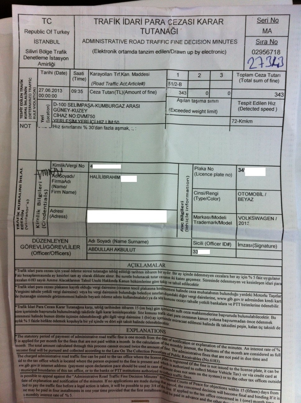 D-100 SELİMPAŞA-KUMBURGAZ ARASI 72 KM/S İLE 343 TL ceza yedim arkadaşlar durum vahim her gün işe gidip geliyoruz, bu nasıl bir mantıktır. 50km hızla gitsem ya bu yolda biri gelip bana arkadan vurur yada silahı çıkarır vurur. 50km hız ile bu yolda gidebilen varsa anlatsın nasıl başardığını gelen geçen korna çalıyor, sellektör yapıyor, küfür ediyor, ani frenle kornaya asılıyor. Bu yolda 50 hız sınırı tabelasını da görememek ayrı bir gülünç durum!.. < Resime gitmek için tıklayın > < Resime gitmek için tıklayın > |