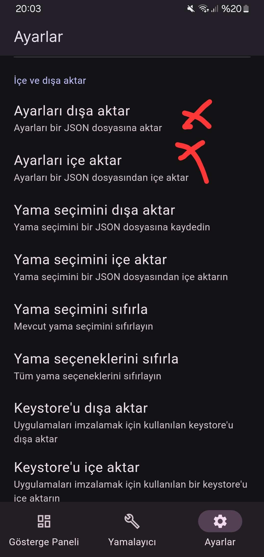 Bu değil hocam. Youtube ayarlarını diyorum ben. İçe dışa aktar diyen kısım.