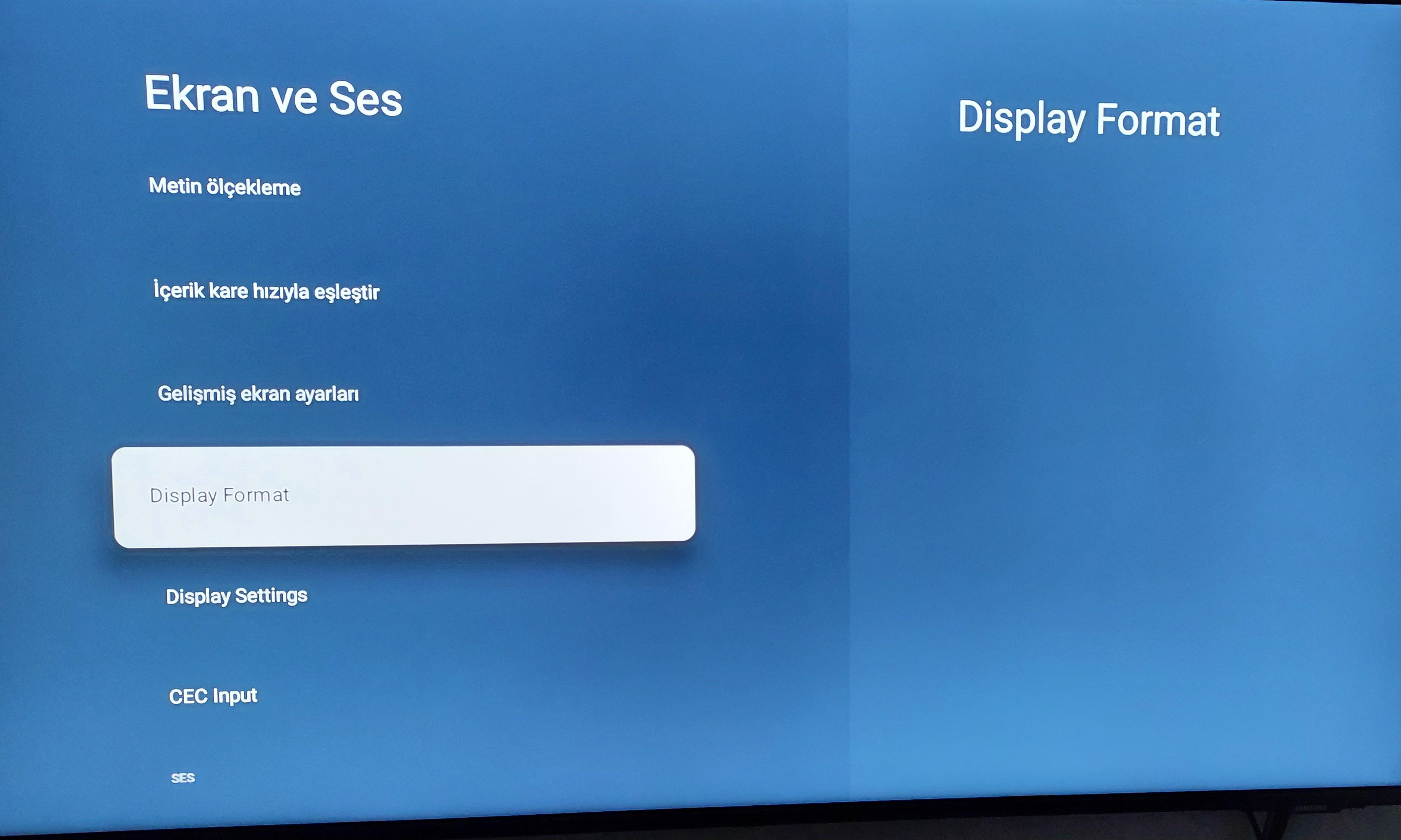 Aşağıdaki fotolarda görüldüğü gibi display değerler görünmüyor ,dolayısıyle 3840-2160 ,1080 gibi değerşeri değiştiremiyorum. Cihaz tv ye göre kendisi atadığı için kullanımda bir sorun görünmüyor.
