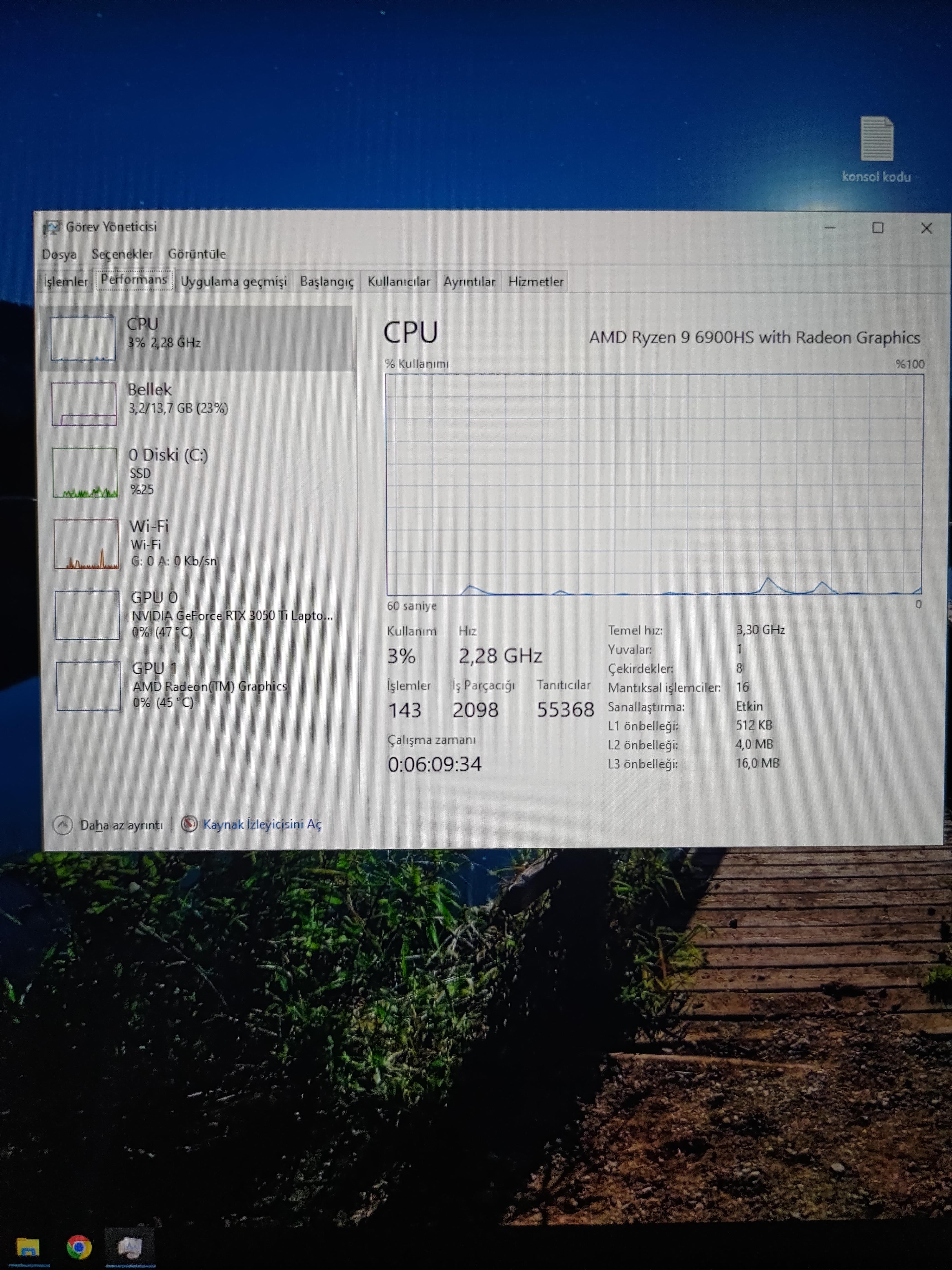 - AMD Ryzen 9 6900HS 3.30 GHz Turbo Boost 4.7 GHz