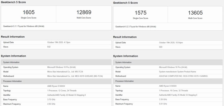 Kaynak:https://videocardz.com/newz/amd-ryzen-9-5950x-and-ryzen-9-5900x-geekbench-5-scores-leak