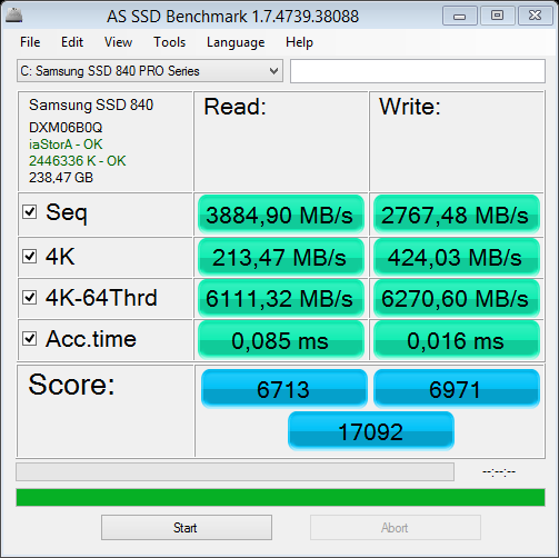 Bende de write değeri 270 mb/s üzerine çıkmıyor. Read 553 mb/s. samsung ssd magician bu ssd'yi ahci'de çalışıyor olarak görmedi. sizlerde nasıl ?