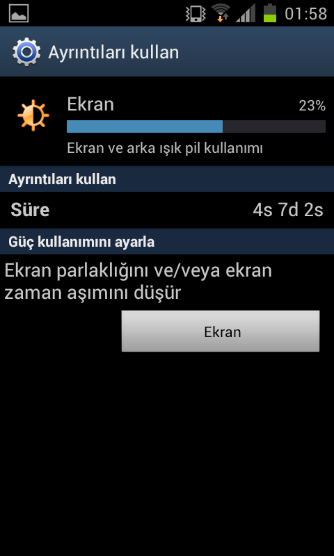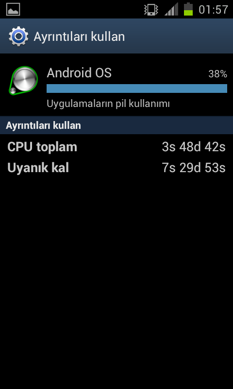 Gorev yoneticisinden kapasaniz bile acik kalan uygulamalar var.Bunlar daha cok oyunlar oluyor. Buna bakmak icin Ayarlar>Uygulamalar a girin ordaki sisteminkiler disinda calisan uygulama(oyun) olmaması gerekiyor.Daha cok Gameloft oyunlari yapiyor bunu. |