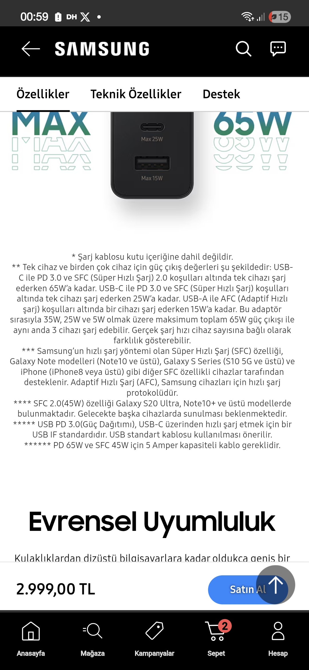 | Spigenin 67w'larını araştırmıştım yapay zekayla onlar pps 2.0 ve çift cihaz rahatlıkla ki her bir port en az 45w oluyormuş şarj ediyor diyordu. Fiyatı yükselmişti 400e falan düşünce alacaktım daha alamadım. |