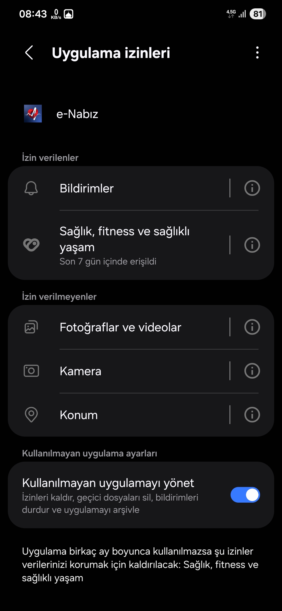 Ayarlar - uygulamalar - e nabız- izinler - sağlık fitness < Resime gitmek için tıklayın > |