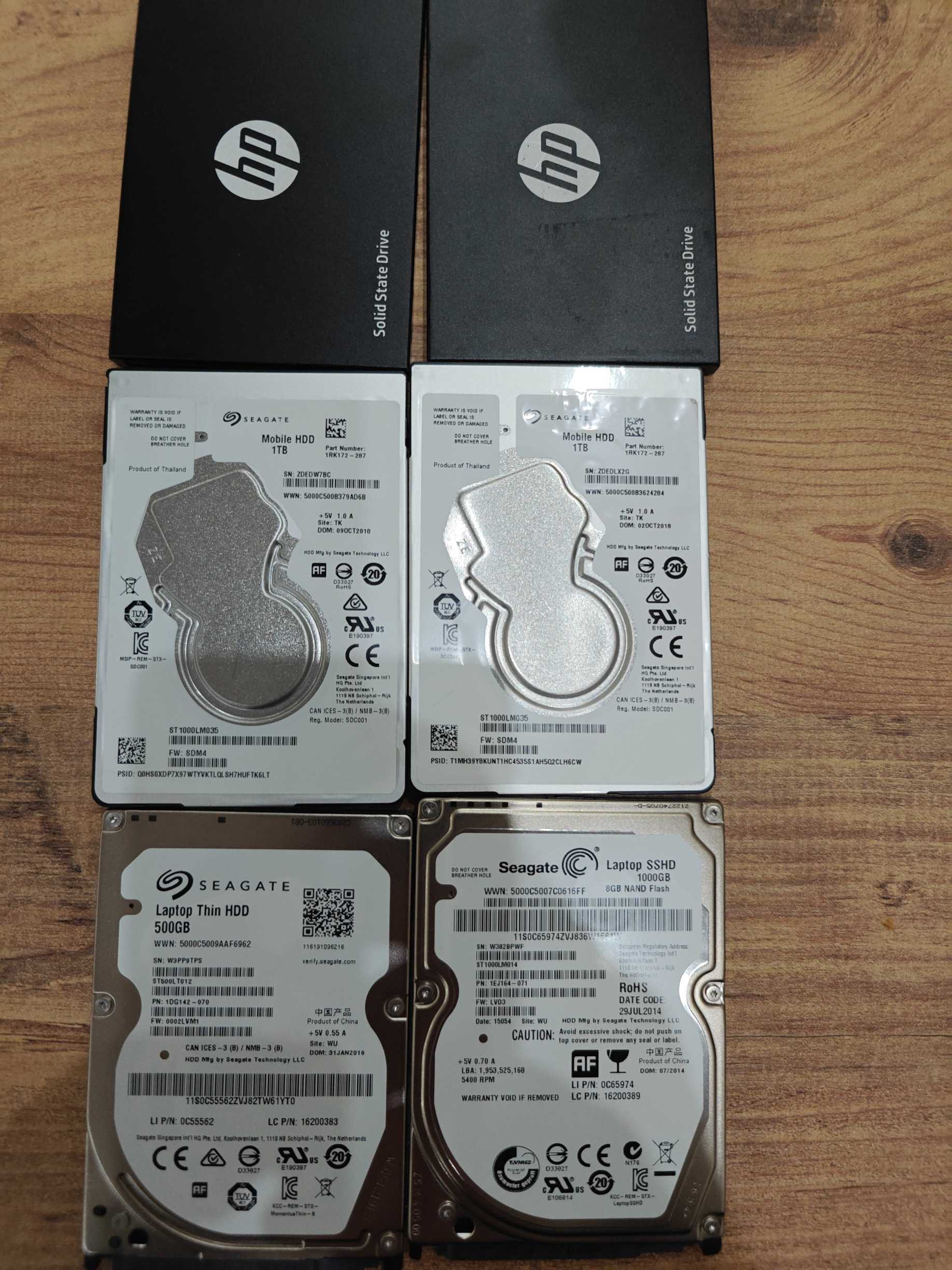 2 Adet Seagate Mobile HDD 1 TB 1 Adet Seagate Laptop SSHD 1 TB 1 Adet Seagate Laptop Thin HDD 500 GB 1 Adet HP SSD 5600 2.5 240 GB 1 Adet HP SSD 5600 2.5 120 GB