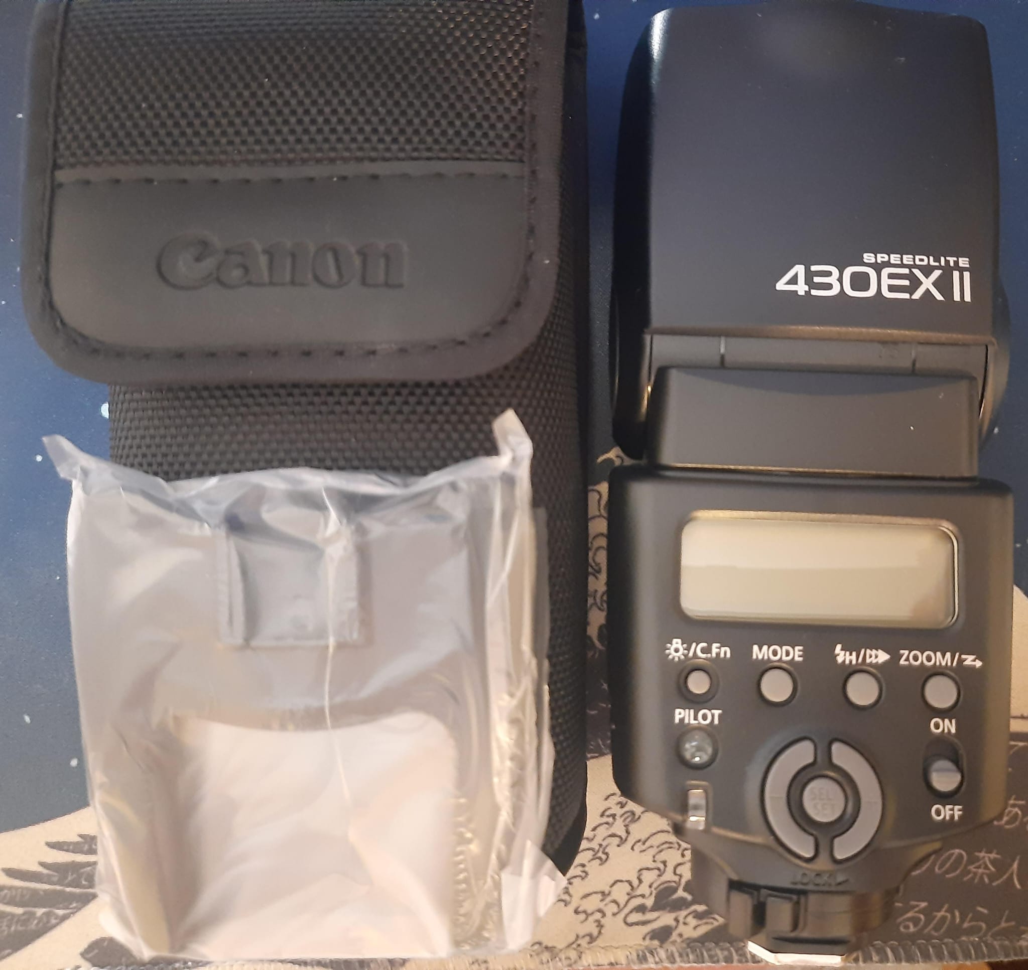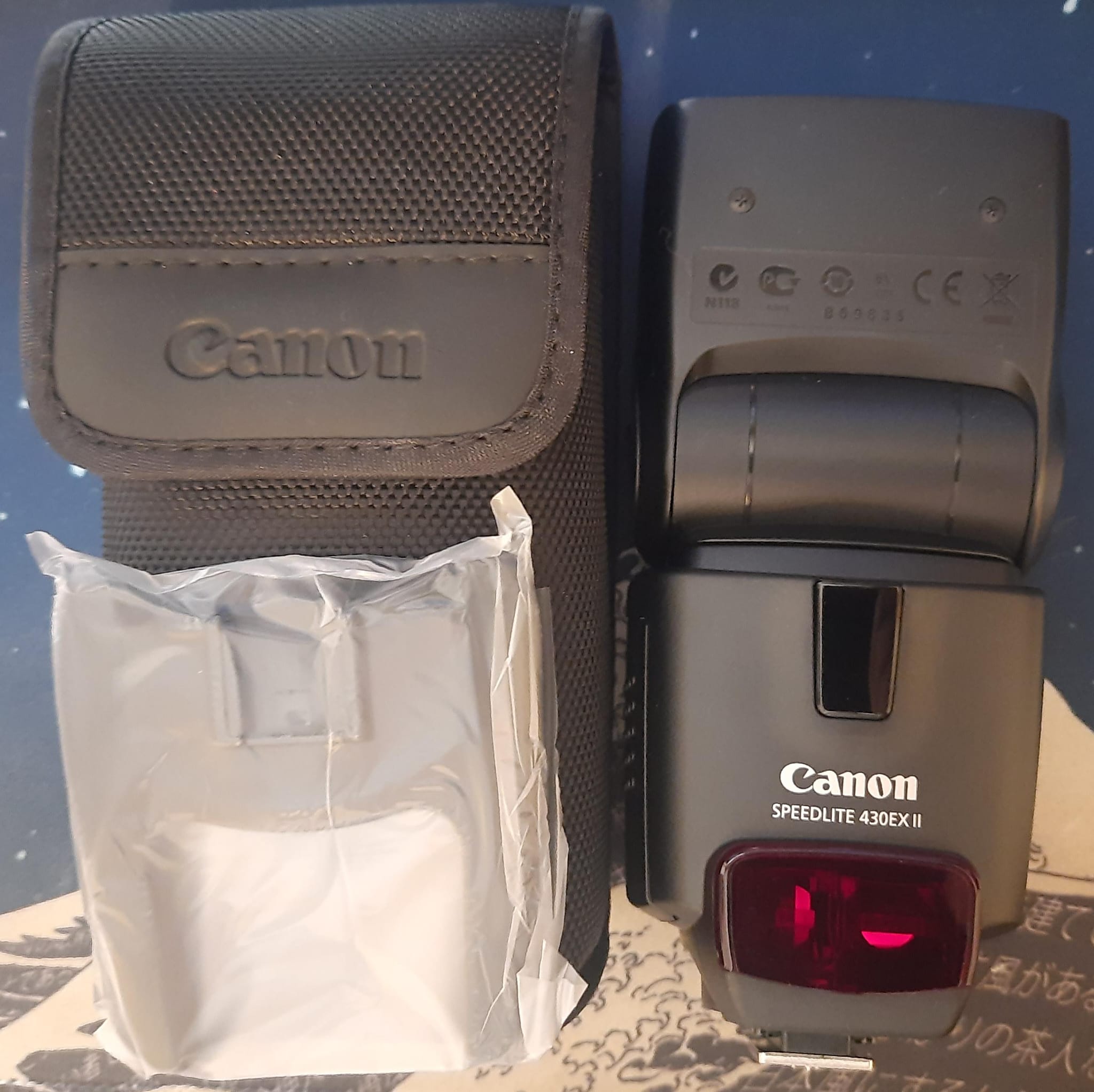Hiç kullanılmamış, kutusunda Canon Speedlite 430 EX II FLAŞ.