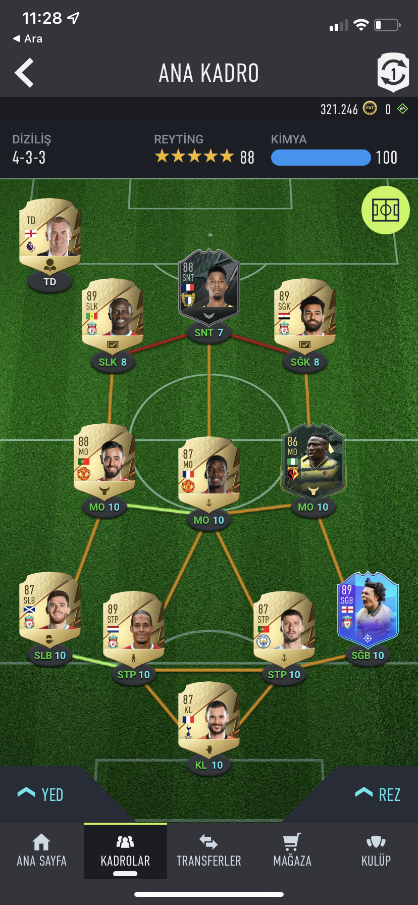 fiyat 450tl kadro güzel 321k coin var bu paraya ronaldo alabilirsiniz. kadroda salah mane gibi yıldız isimler mevcut. içerik kadro yedekler çok zengindir.