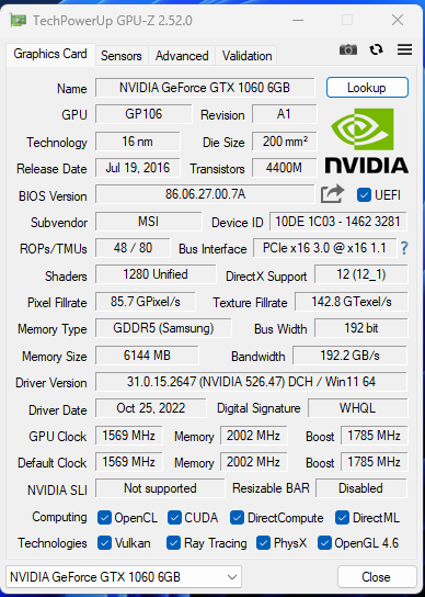 SATILIK (Kargo dahil) MSI Gaming X GTX 1060 6GB Ekran Kartı