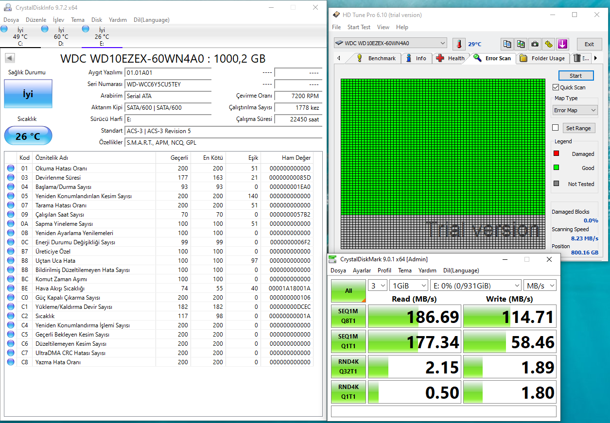 Sorunsuzdur , bad sector yoktur sağlığı iyidir 3 adet mevcut ,adet fiyatı 800 TL